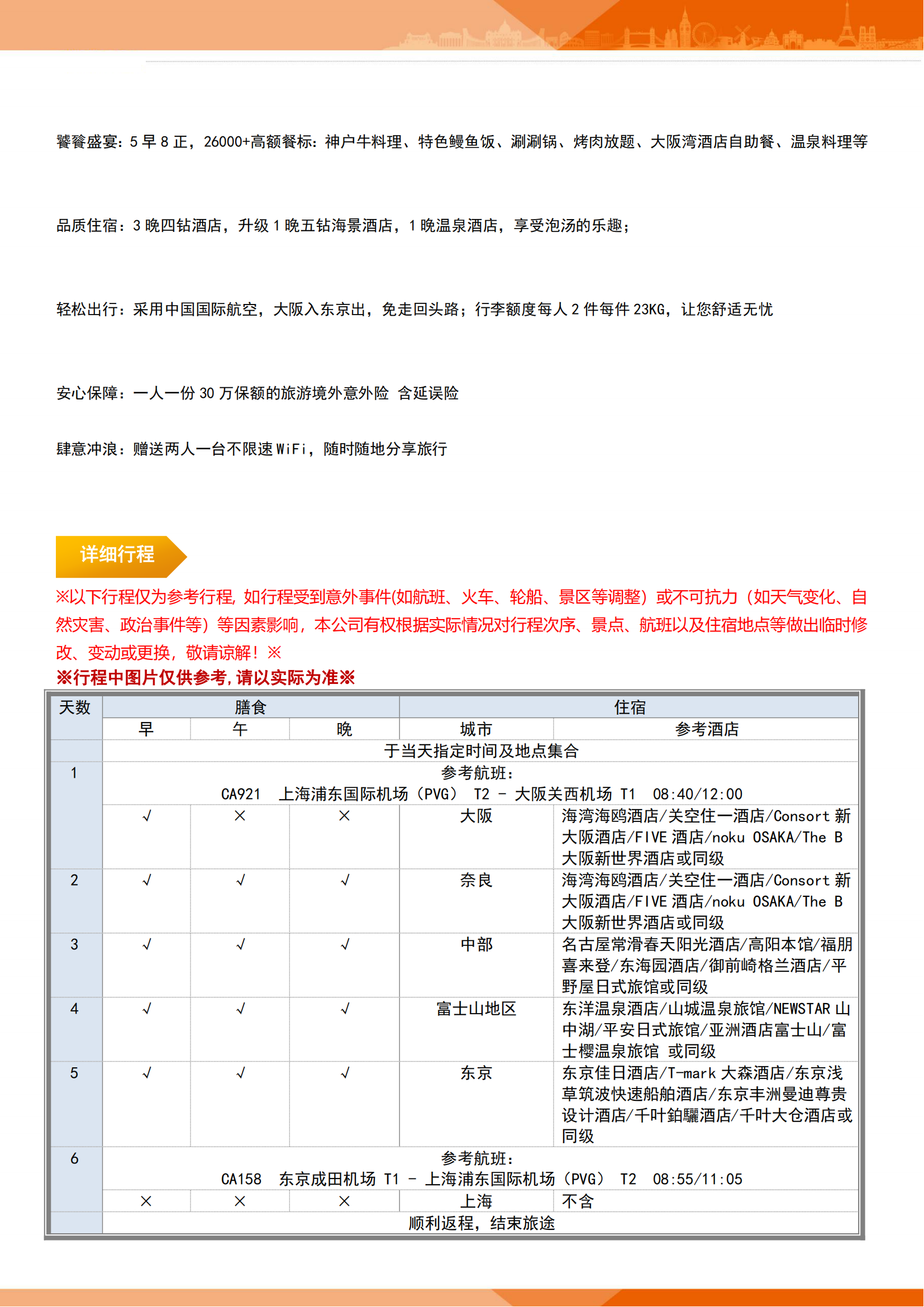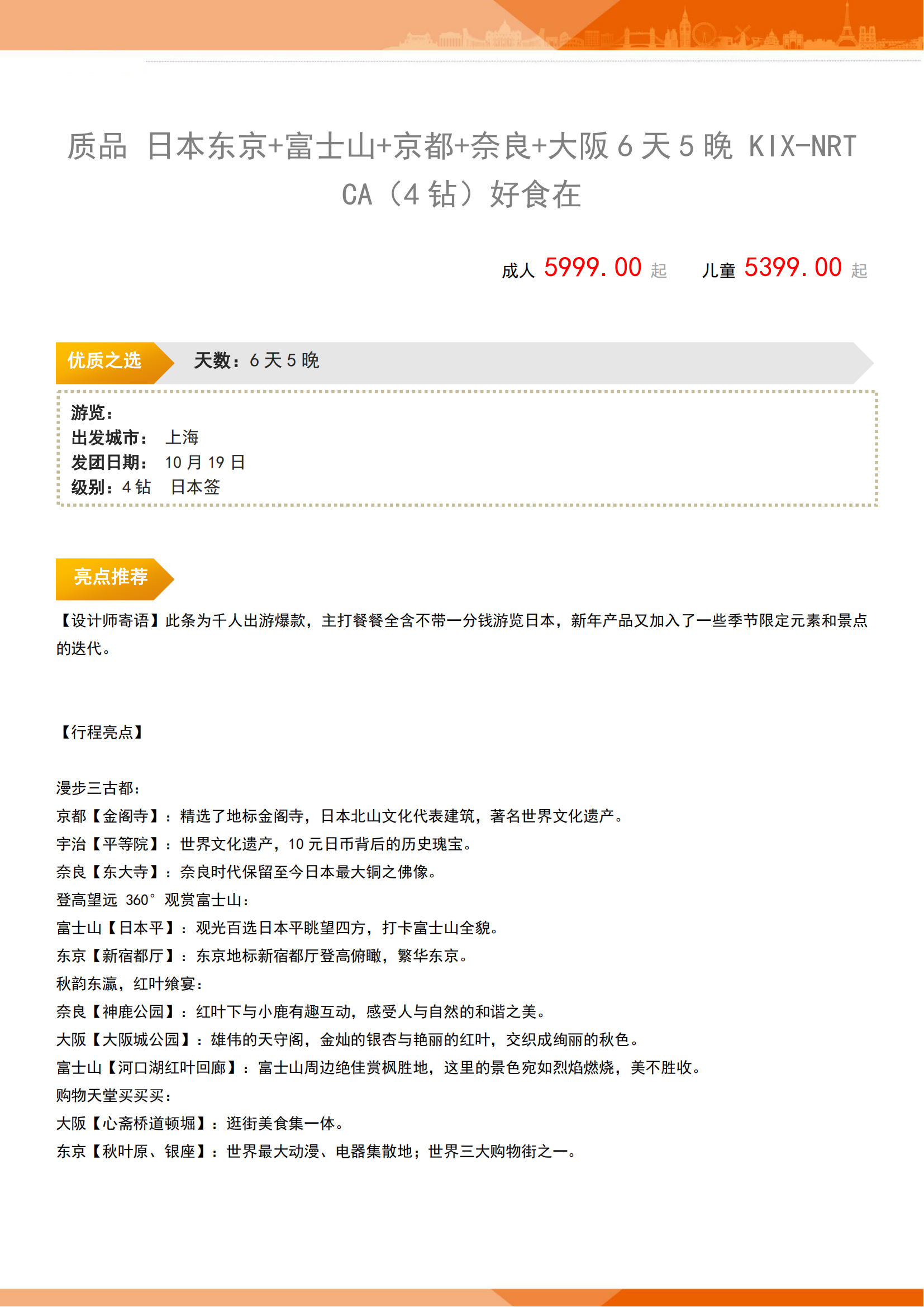 【10-12月--国航阪进东出】4钻质品 好食在-日本 东京+富士山+京都+奈良+大阪 5晚6日 FJY
