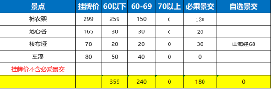3.年龄补差&必选景交:70周岁以上:+180元/人;60-69周岁:+420元/人;60周岁以下:+539元/人