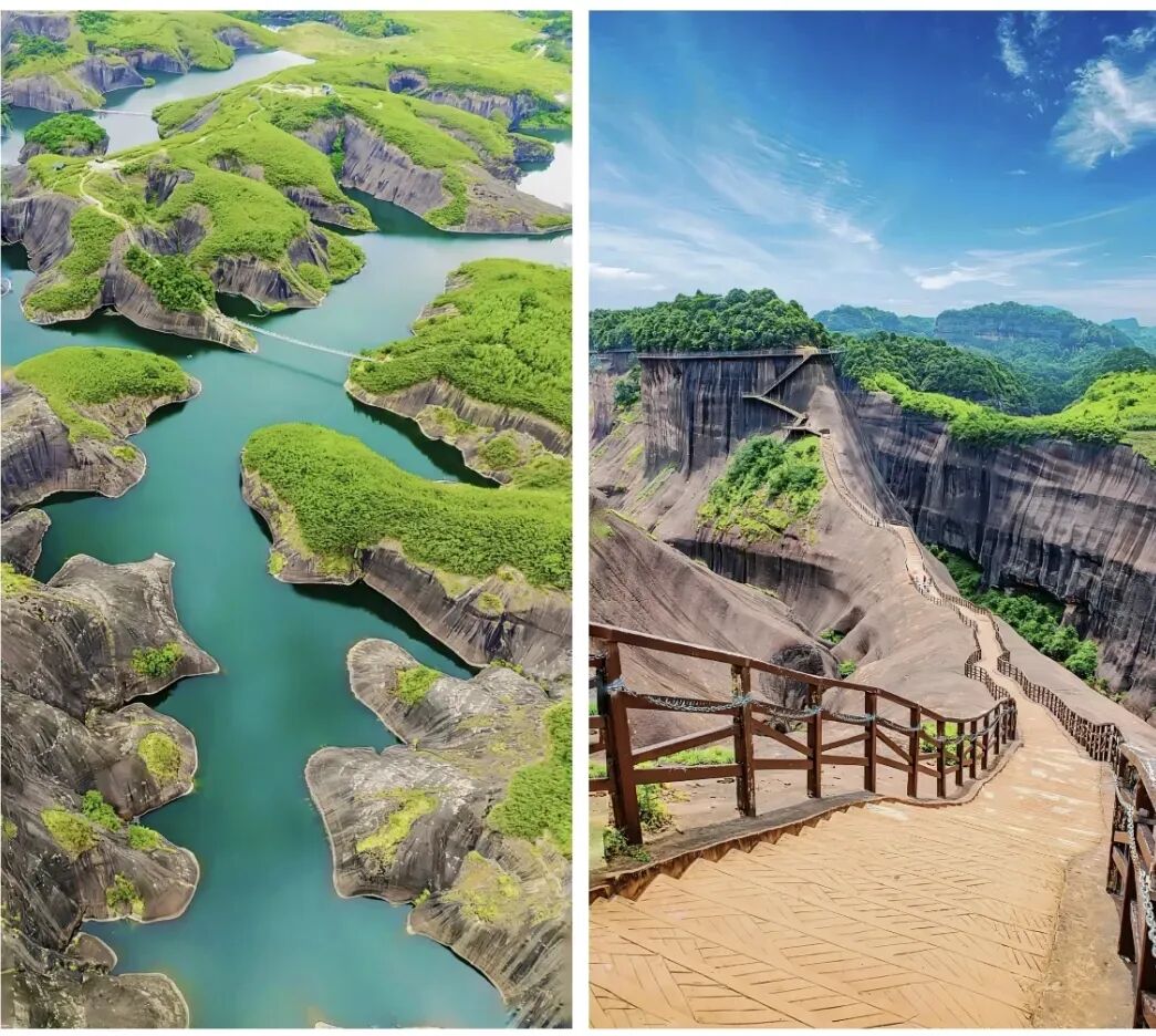 早餐后前往【高椅岭地质公园】(门票已含,游览3小时)这里被誉为上帝遗忘的地方,一个美得一塌糊涂的地方”。这里地势以山林为主,风景宜人。高椅岭山、水、泉、洞、寨、崖、坦俱全,是一块尚未开发的丹霞地貌处女地,其最大的特点就是丹霞地貌周边有漂亮的水洼点缀,红岩绿水、险寨奇涧,生态自然。如今已经是郴州知名网红景点,前往郴州旅游的朋友必打卡之地。