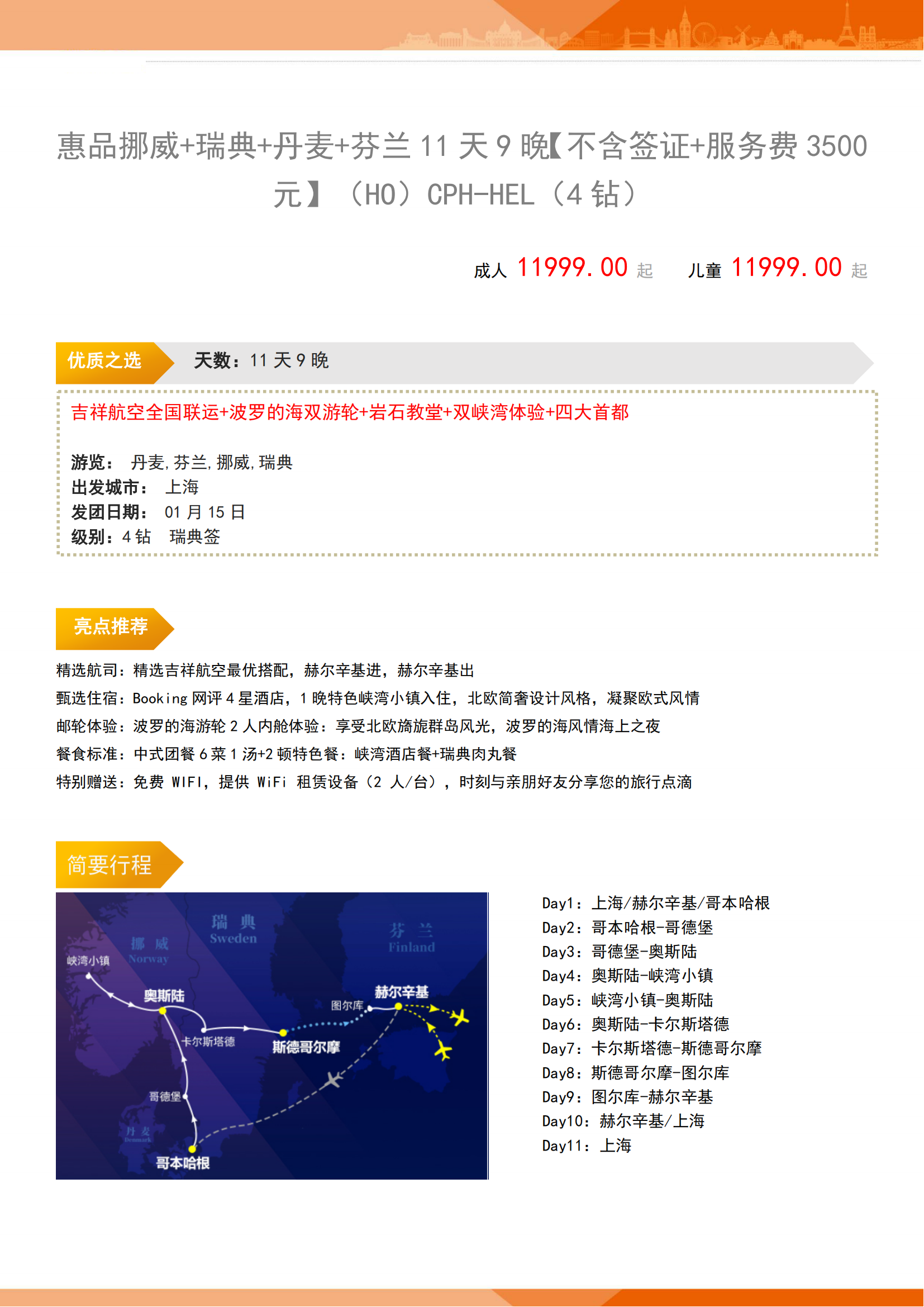 【1-2月】4钻惠品-北欧四国 9晚11日-挪威+瑞典+丹麦+芬兰 FJY