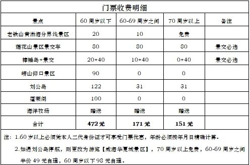 小贴士:刘公岛岛上景交60元/人,贵宾可根据自身情况自愿选择购买,非必消!