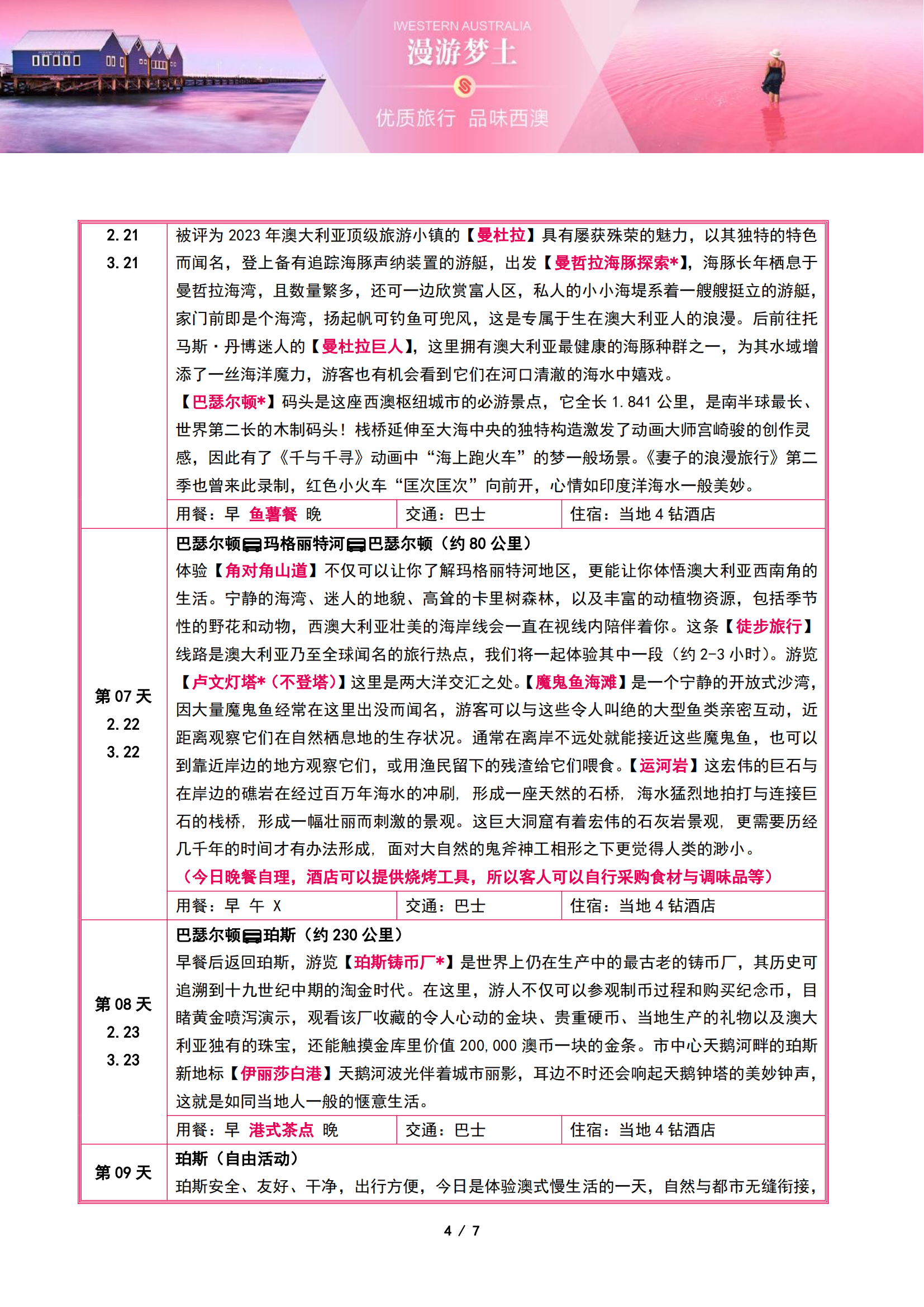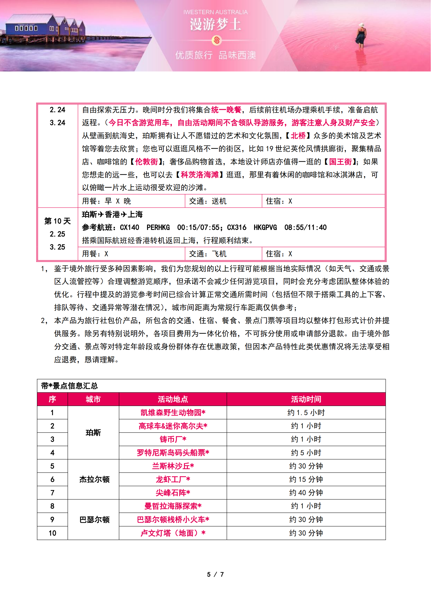 • 【2-3月】【漫游梦土】西澳大利亚 8晚10日-珀斯 杰拉尔顿 巴瑟尔顿 SW