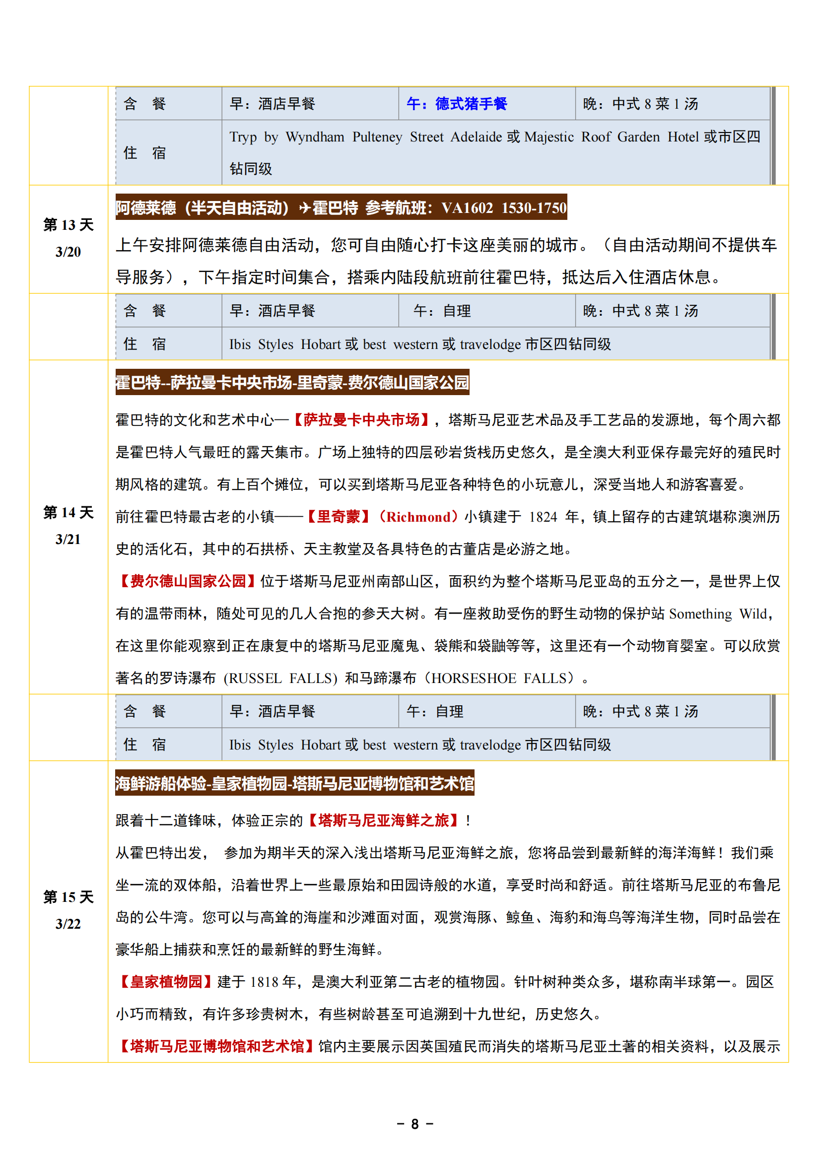 【3月8日】【全景环澳】澳大利亚 深度环游 21日-塔斯马尼亚 | 西澳 | 新南威尔士 | 南澳 | 维多利亚州 ZJN