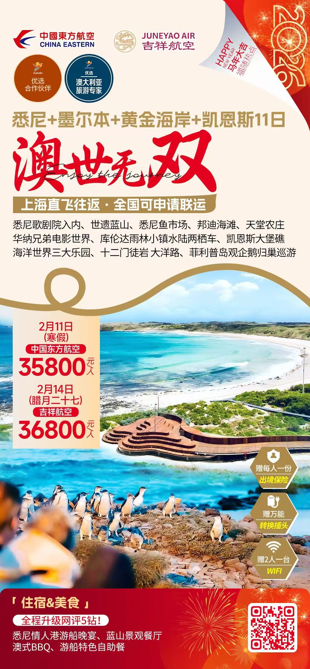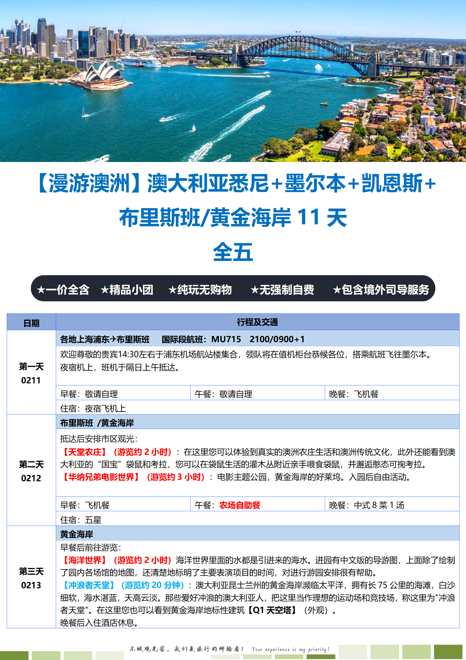 【2月11日-2月14日春节】【澳世无双-漫游澳洲】澳大利亚 悉尼+墨尔本+凯恩斯+布里斯班/黄金海岸 11日 ZJN