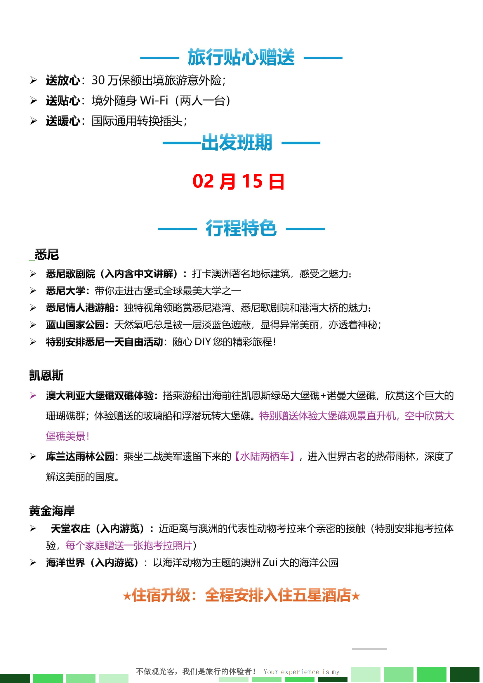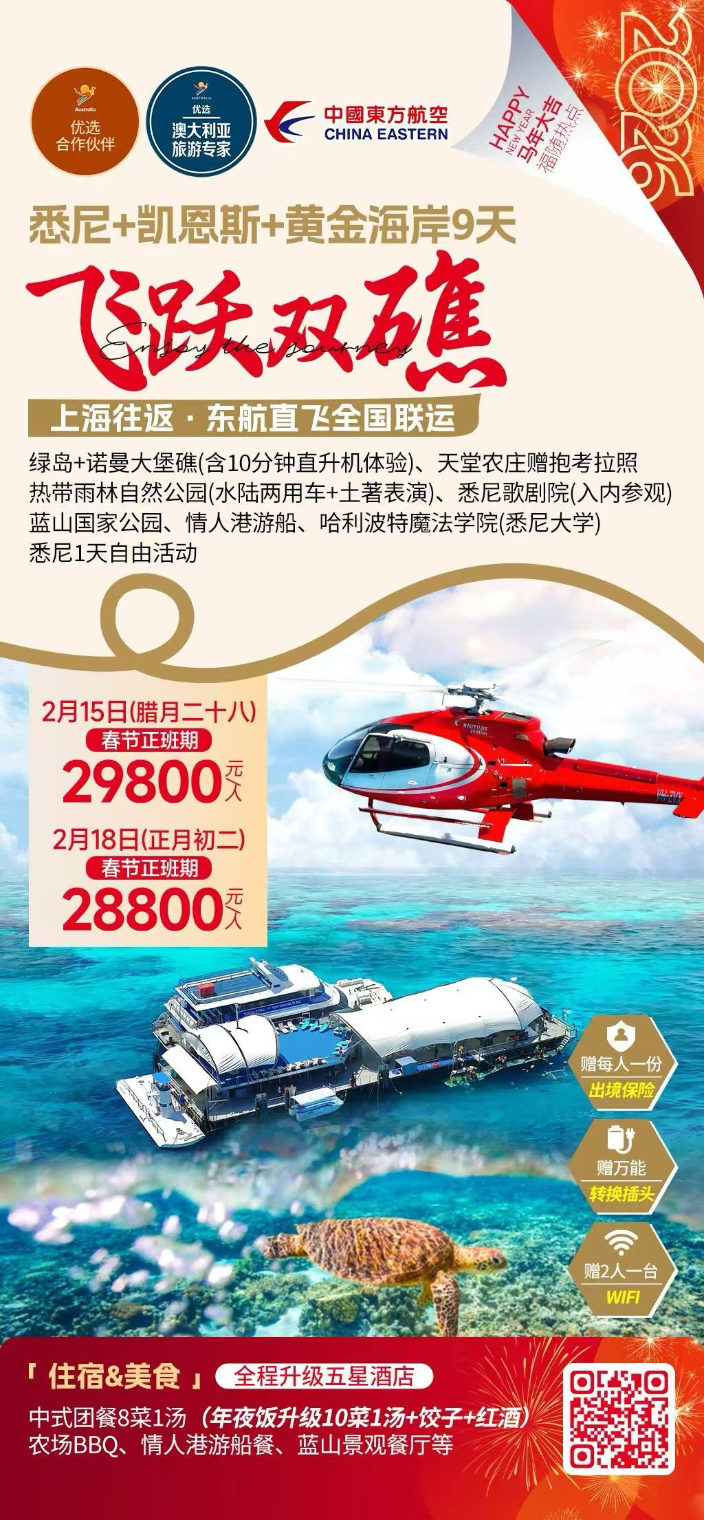 • 【2月15日-2月18日春节】【飞跃双礁】澳大利亚 悉尼+墨尔本+布里斯班+黄金海岸 9日 ZJN