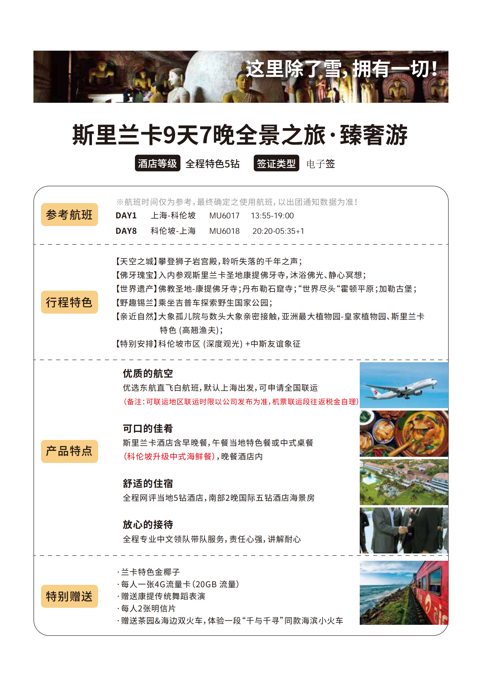 【2月春节】臻奢游-斯里兰卡 全景 7晚9日-11月11日前报名双人立减2000元 LBS
