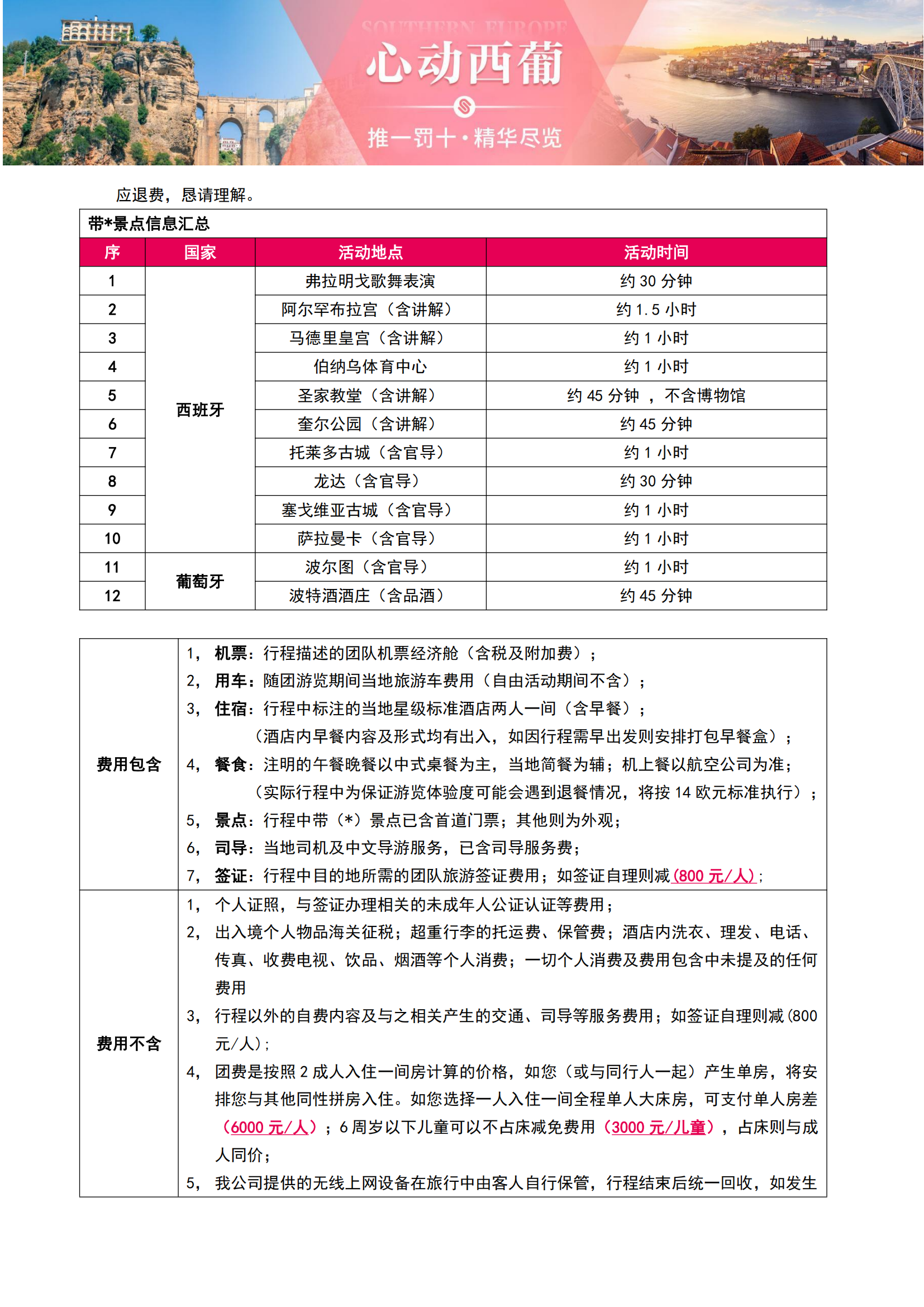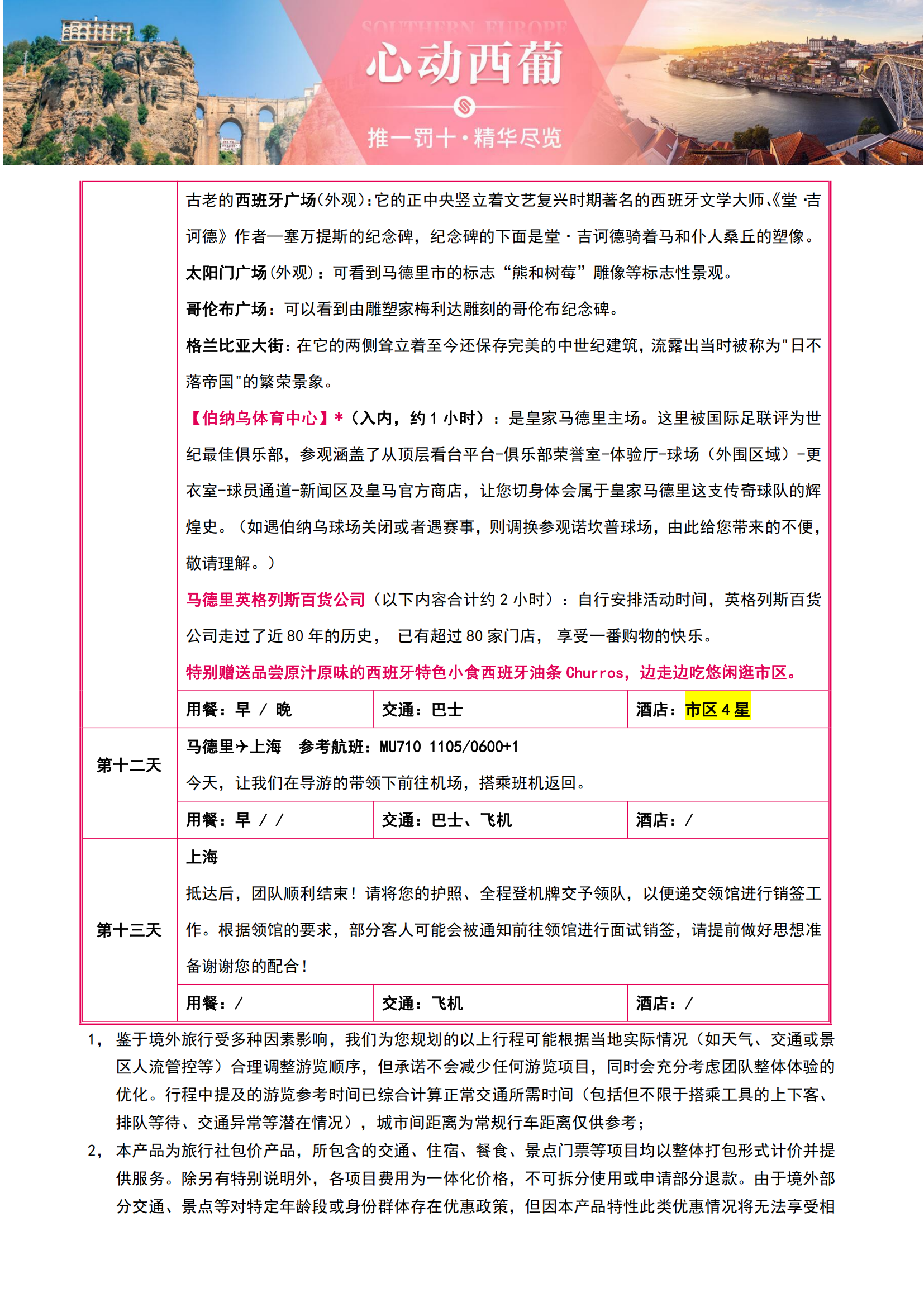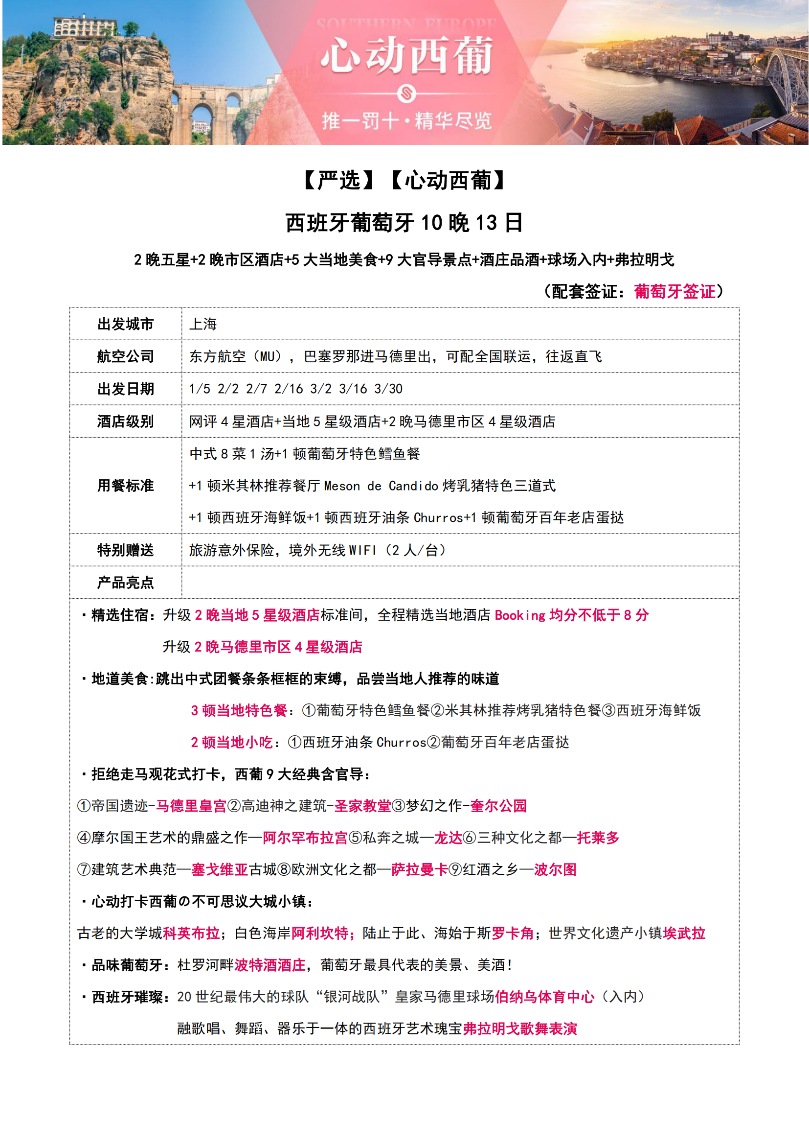 • 【2026年1-3月含春节心动西葡】西班牙+葡萄牙10晚13日(9大官导景点+酒庄品酒+球场入内+弗拉明戈+巴进马出MU)SW