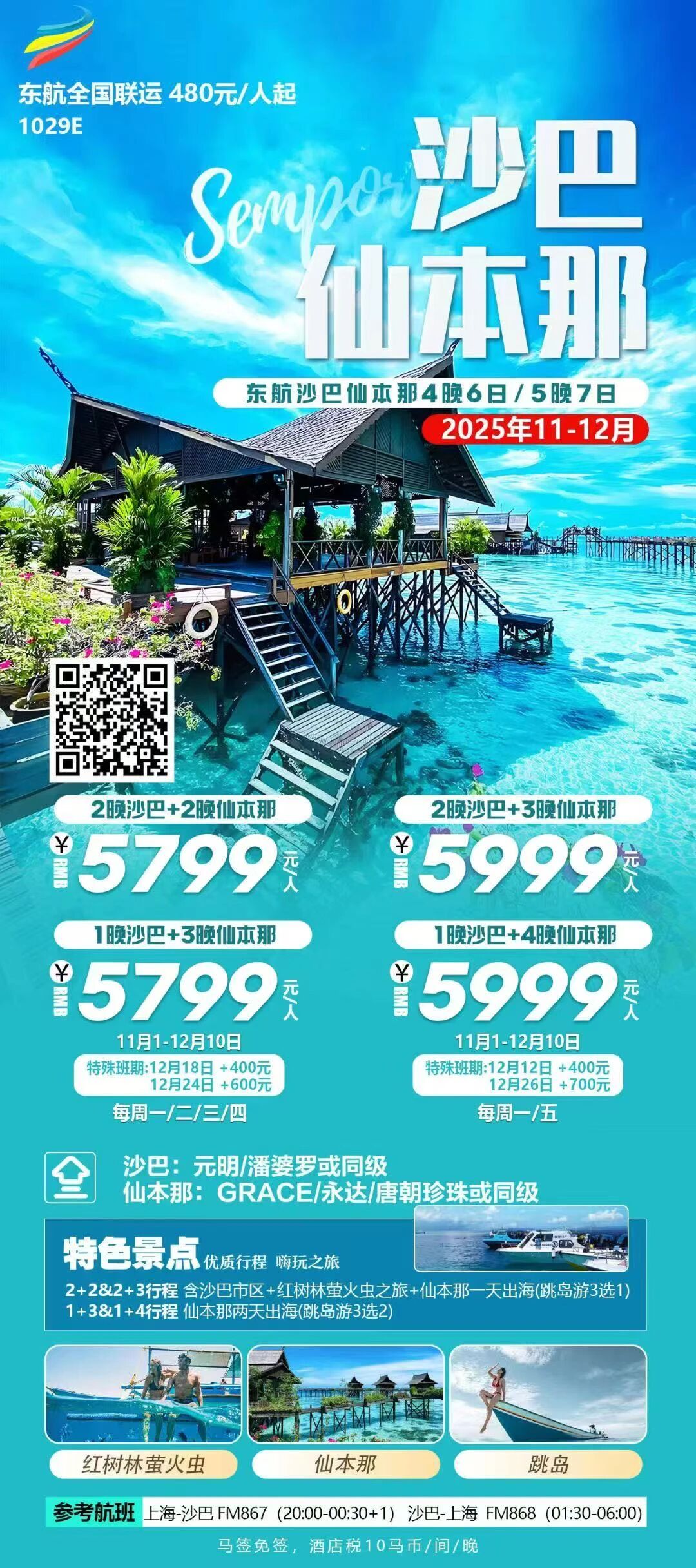 <沙、仙1+4>沙巴、仙本那7天5晚 东航直飞 可联运 纯玩团 - HT