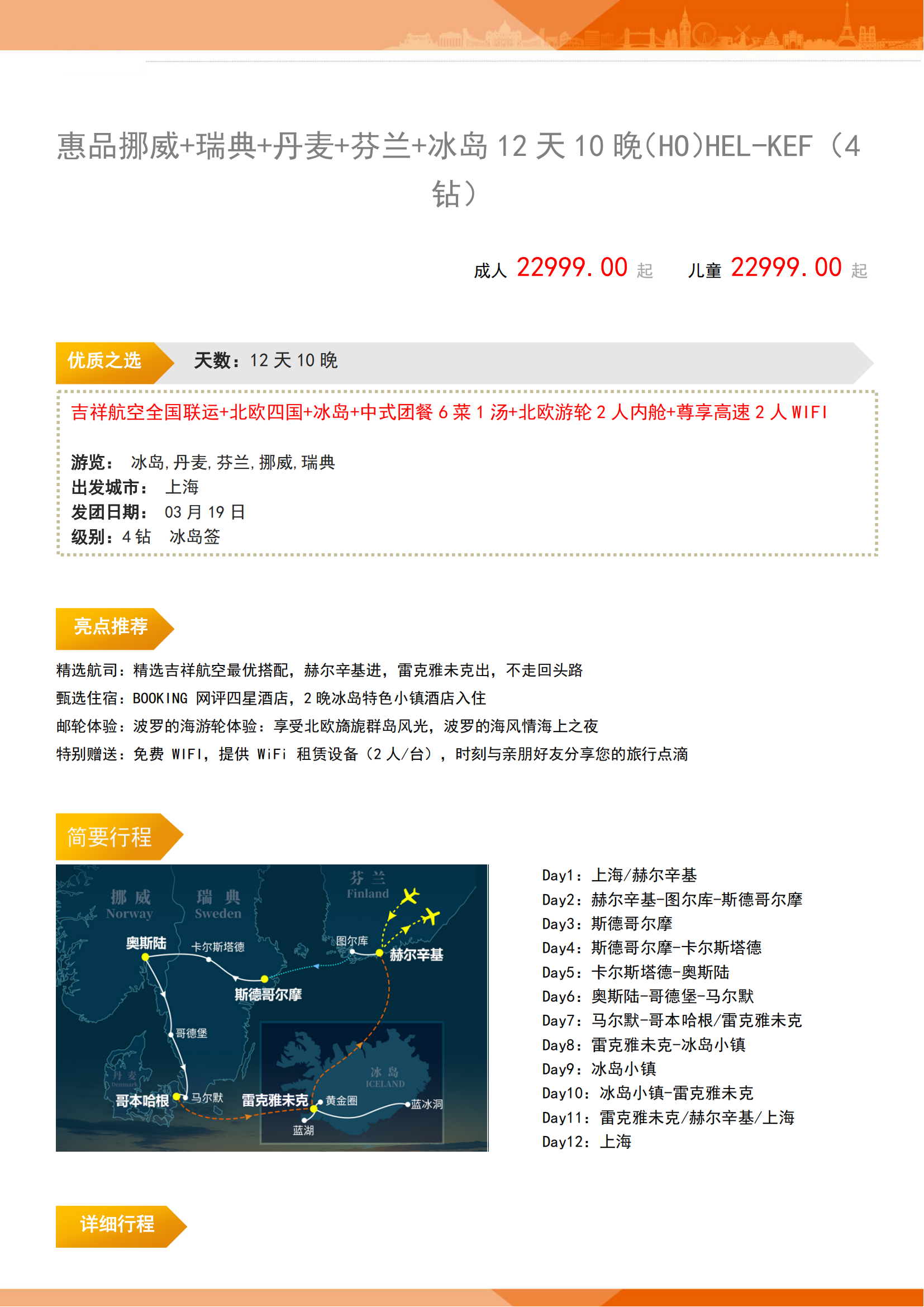 【1-3月】4钻惠品-北欧四国+冰岛 10晚12日-挪威+瑞典+丹麦+芬兰 FJY