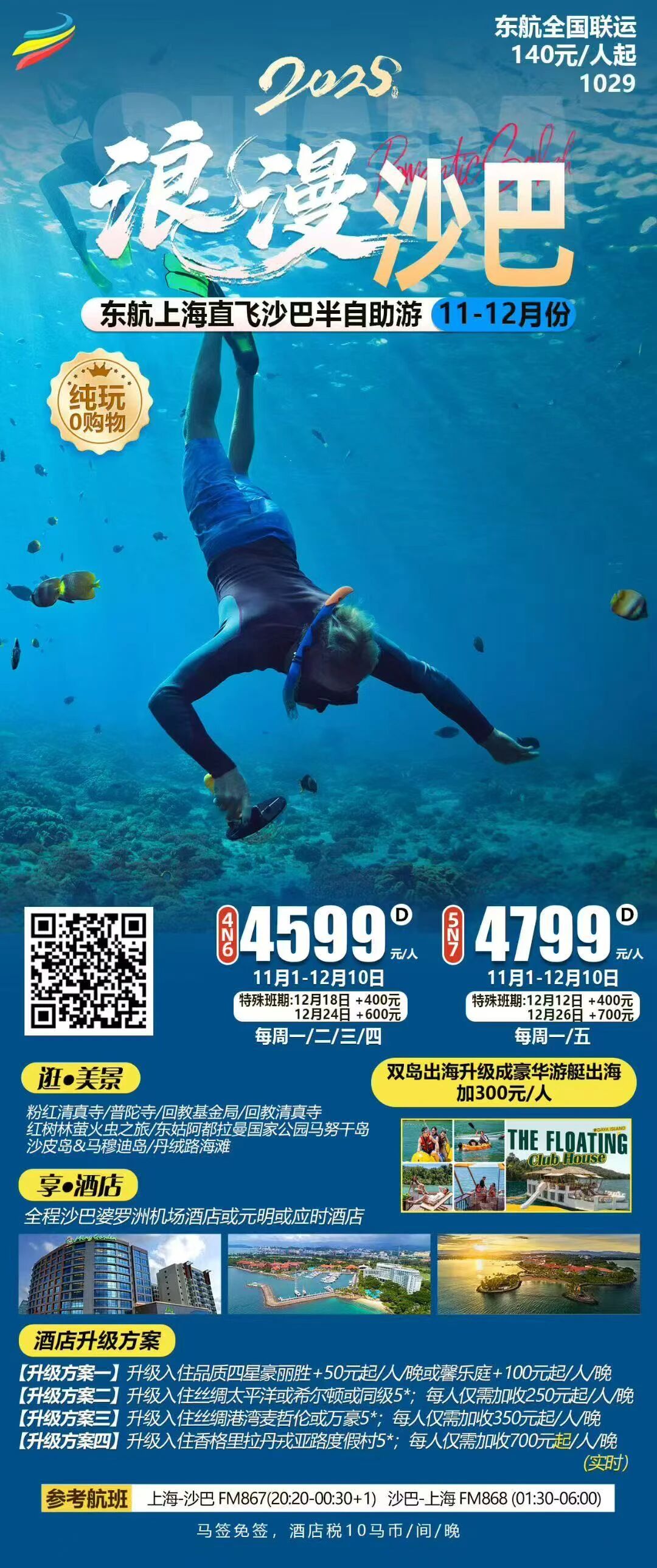 • <浪漫沙巴> 沙巴一地7天5晚 半自助 东航直飞 可联运 纯玩团 - HT