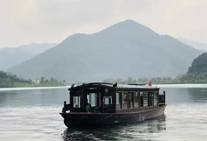前往:乘船游览铜鉴湖水域,水域面积约1.35平方公里(挂牌价55元/人不含,团队优惠价:30元/人,自愿自理)主湖区将有人工摇橹船和仿古电瓶船,其中摇橹船主将在靠近灵山幻境的湖埠片乘坐,而仿古电瓶车将在整个主湖区游览,预计将设有铜鉴湖花海主码头、昙山上岸码头、昙山上船码头、金牛岛码头、湖埠上下船码头、海棠荣春上岸码头、九曲梅轩上船码头、湖中岛漳山上下船码头,仿古电瓶船游览一圈大约需要35分钟左右。不乘游船的客人自由活动