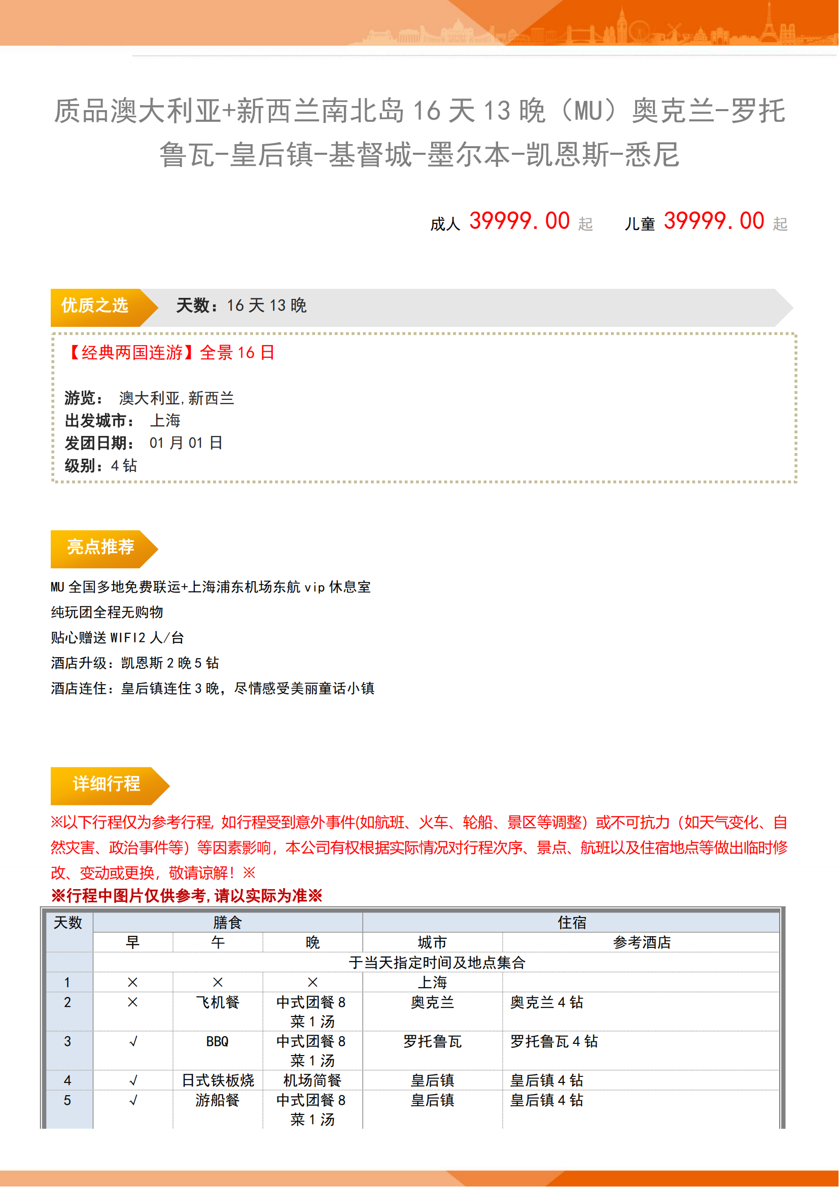 【1-3月】4钻质品-澳大利亚+新西兰 南北岛 13晚16日-奥克兰-罗托鲁瓦-皇后镇-基督城+墨尔本-凯恩斯-悉尼 FJY