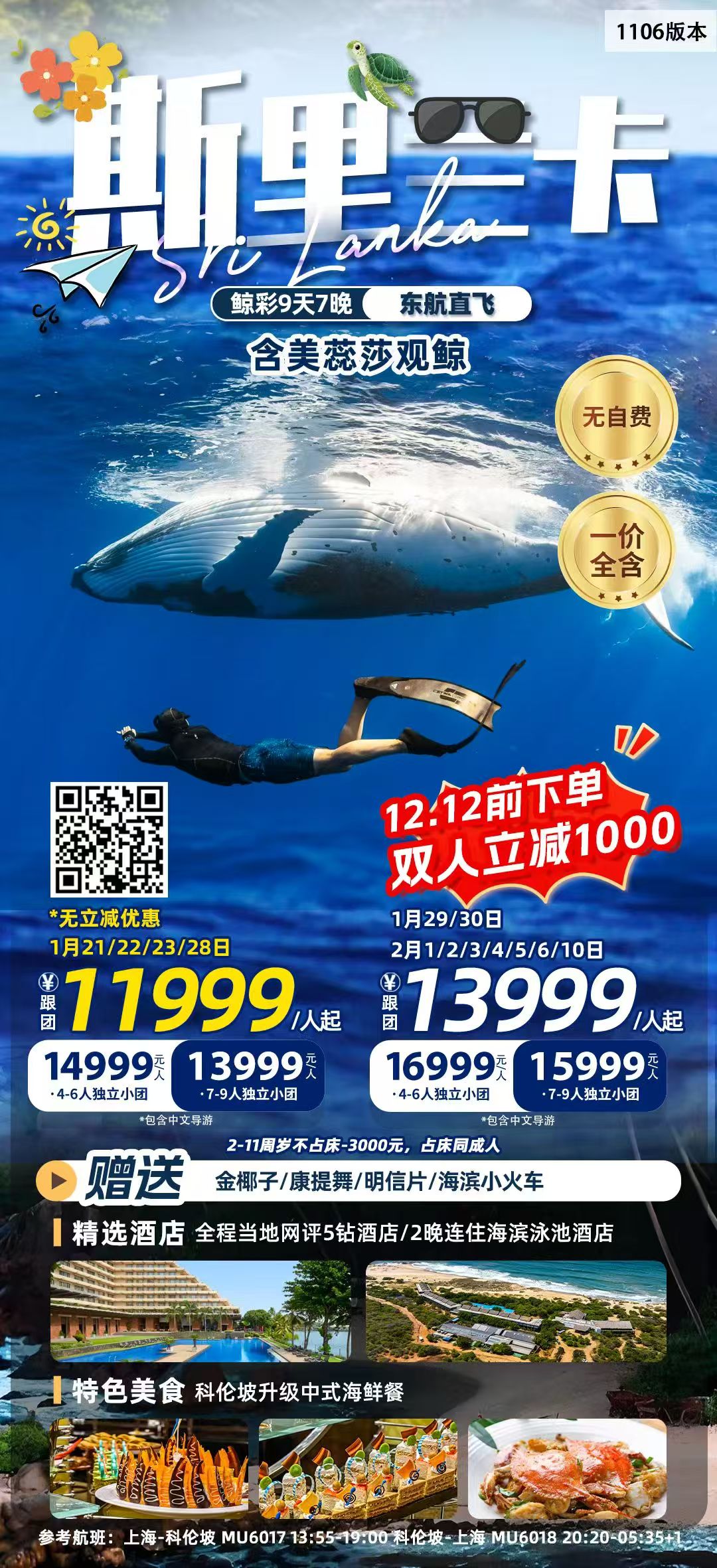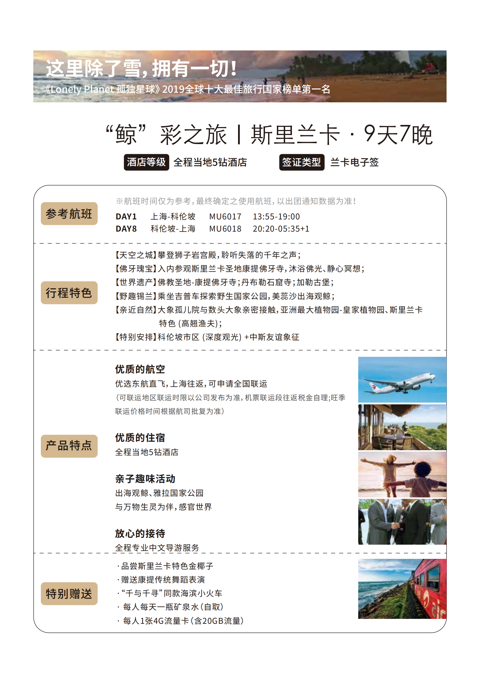 • 【1-2月】【“鲸”彩之旅】斯里兰卡 7晚9日 LBS
