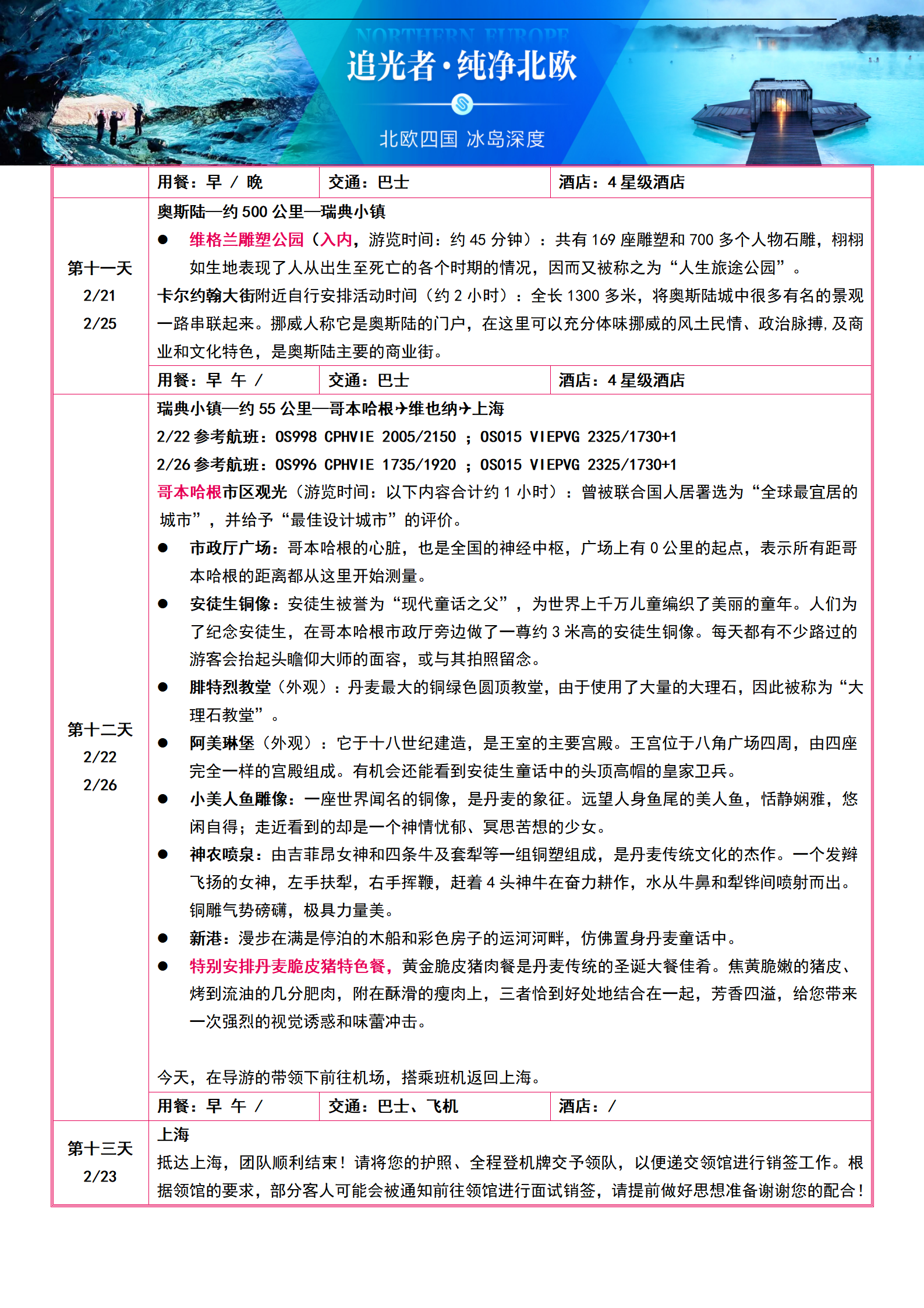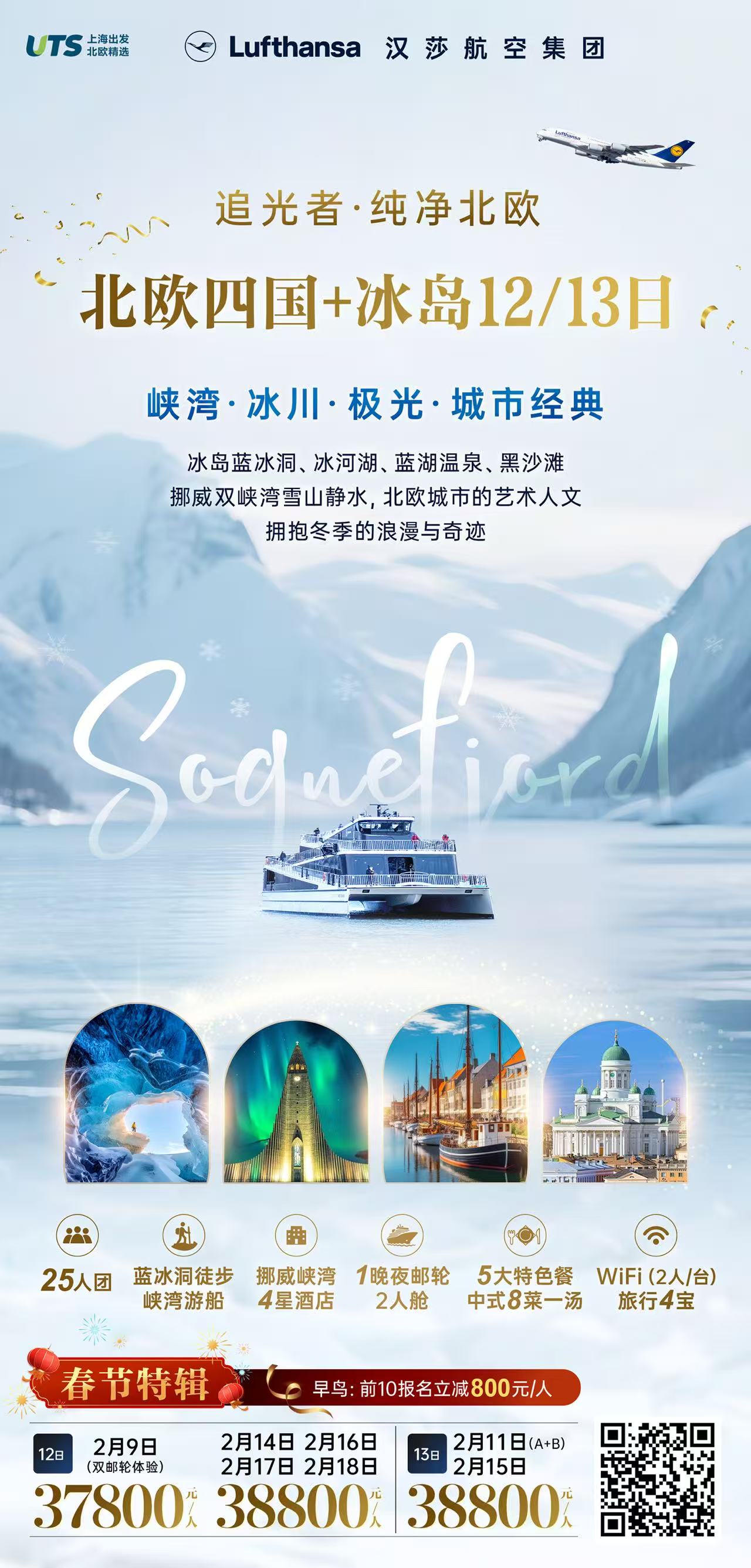 【2月春节】北欧四国+冰岛 10晚13日-3晚冰岛+蓝冰洞+蓝湖温泉+挪威双峡湾+5顿特色餐 SW