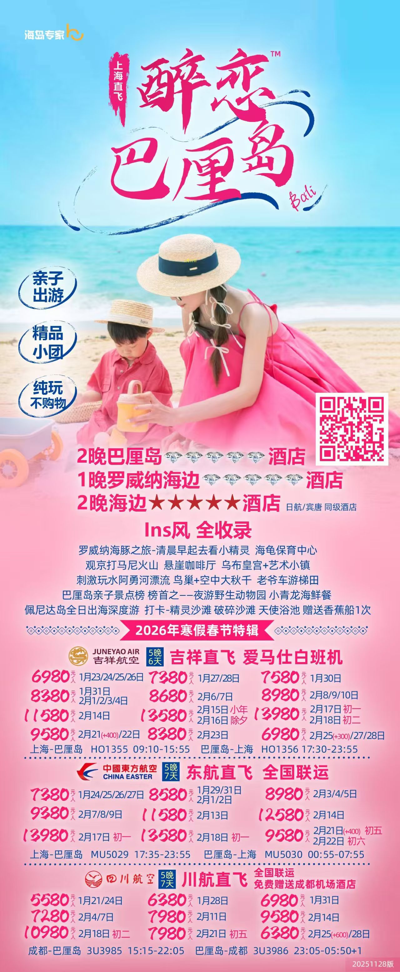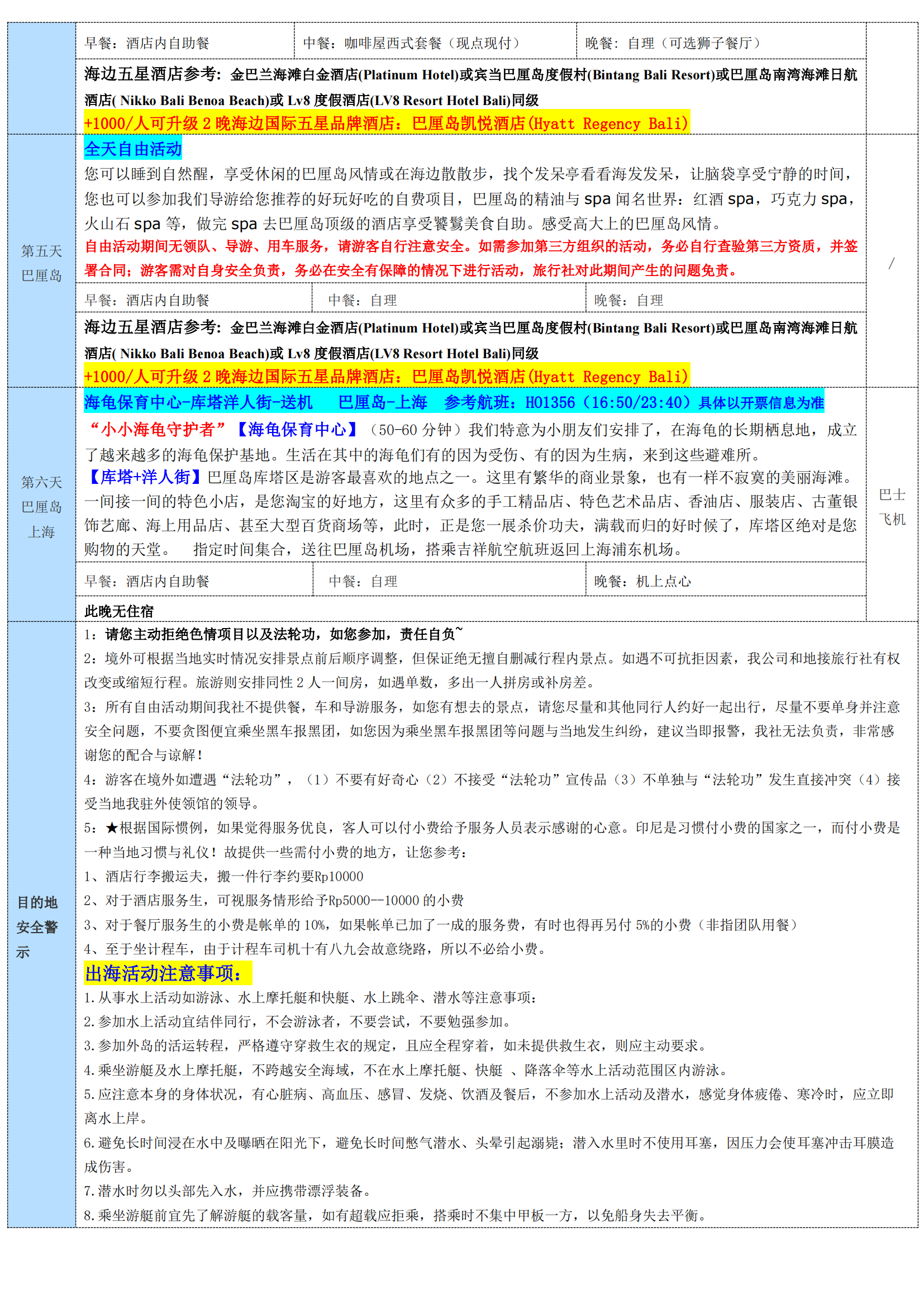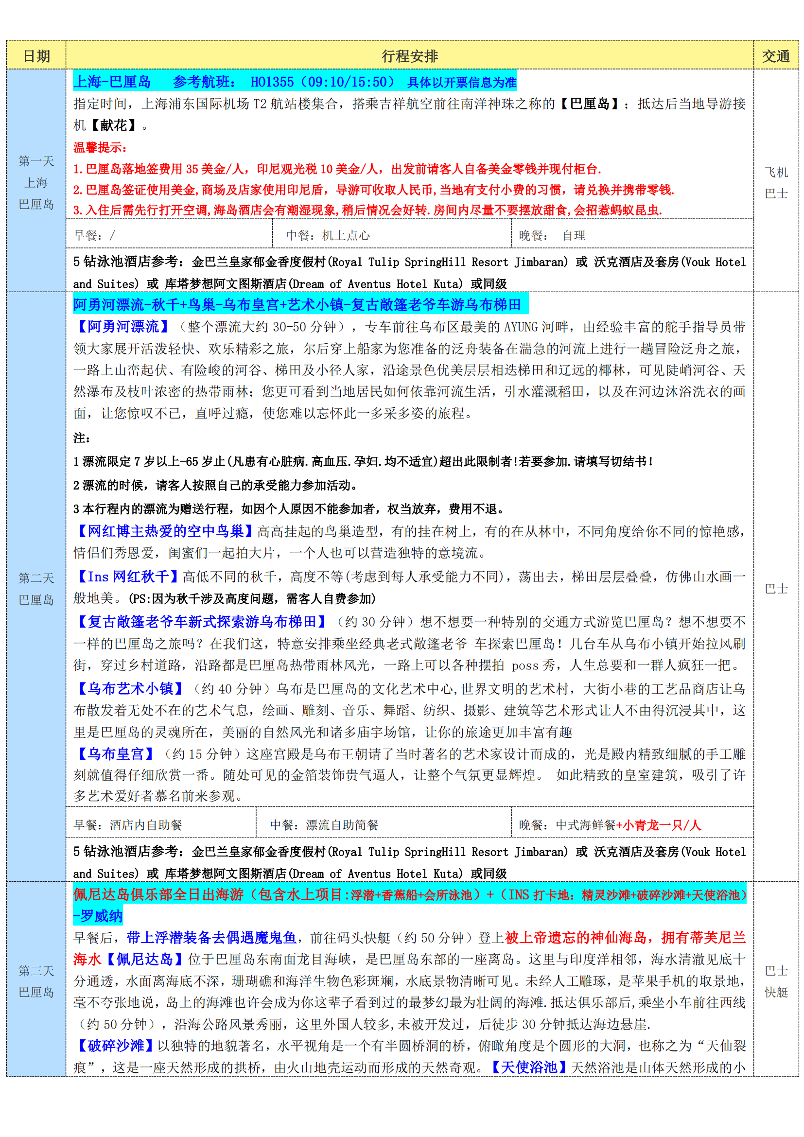 【1-2月+春节-吉祥】醉恋-巴厘岛 5晚6日-2晚巴厘岛5钻酒店+2晚海边5星酒店+罗威纳1晚海边5钻酒店 ZW