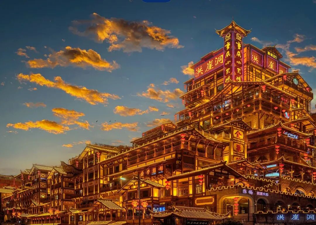 欣赏夜景国家AAAA级旅游景区【洪崖洞】原名洪崖门,是古重庆城门之一,位于重庆市渝中区嘉陵江滨江路88号,2003年,总投资3.85亿元对洪崖洞片区进行旧城拆迁改造,于2006年9月竣工开业,是兼具观光旅游、休闲度假等功能的旅游区。洪崖洞是重庆市重点景观工程,建筑面积4.6万平方米,主要景点由吊脚楼、仿古商业街等景观组成 。洪崖洞一共有11层,夜晚灯光从晚上6点开灯,10点熄灯。可望吊脚群楼观洪崖滴翠,逛山城老街赏巴渝文化,烫山城火锅看两江汇流,品天下美食。形成了“一态、三绝、四街、八景”的经营形态,体现了巴渝文化休闲业态。