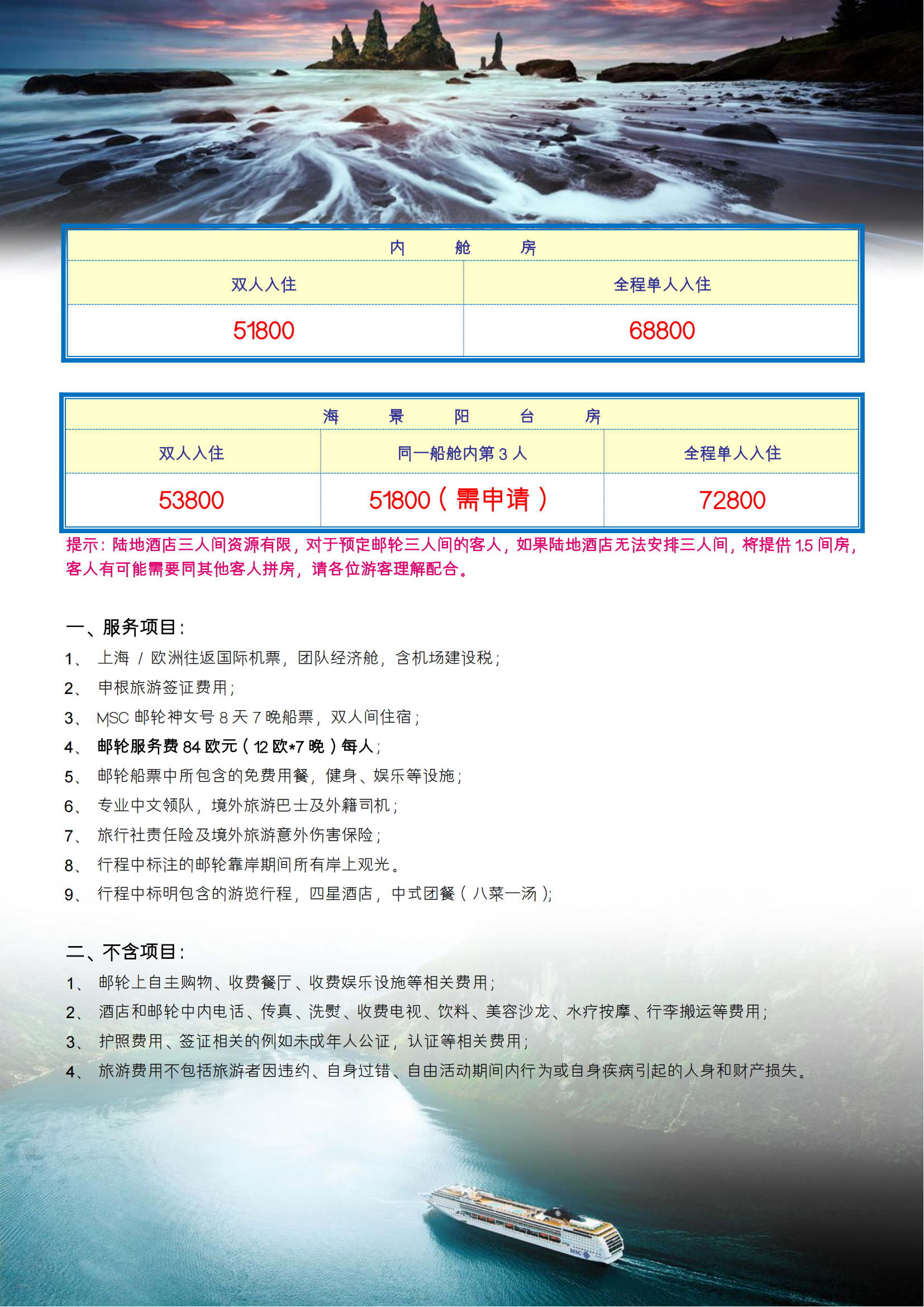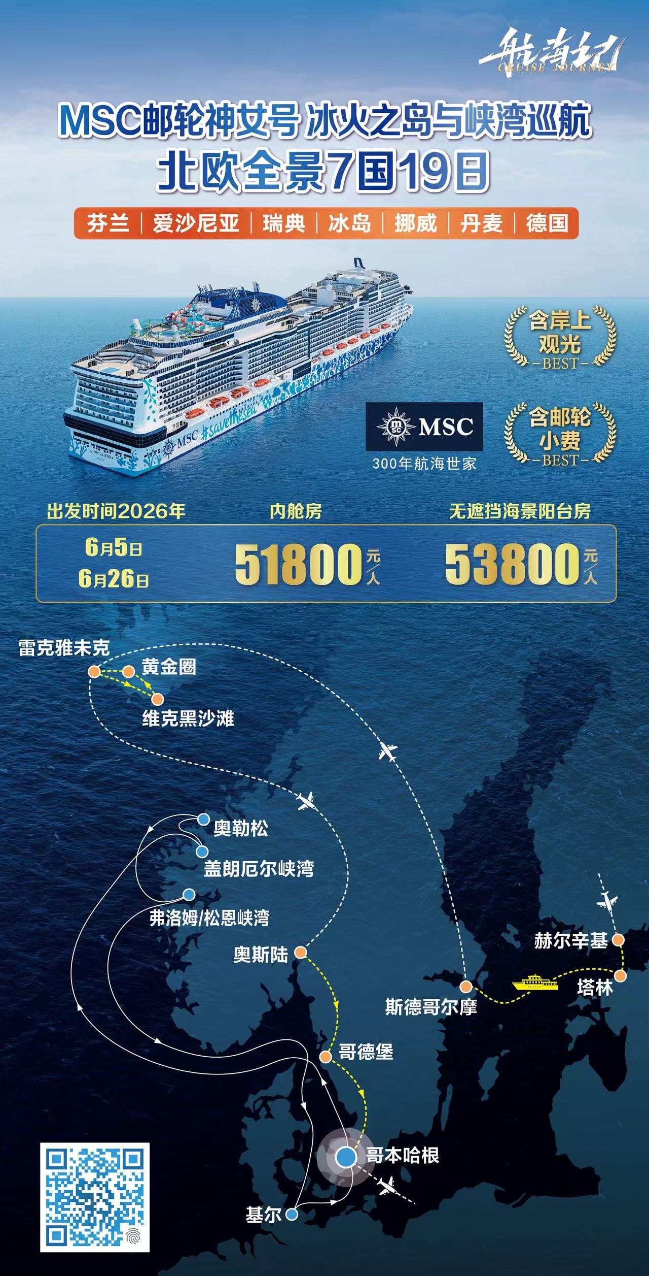 【6月-MSC邮轮神女号】 北欧四国+峡湾+冰岛+爱沙尼亚+德国 7国19日-芬兰 瑞典 挪威 丹麦 SW