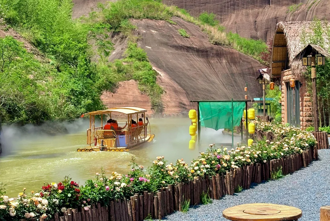 ◈登【逍遥洲】(游览时间1小时)古意盎然的景致:岛上点缀着茅草屋,您可以在这里彻底放松。或是在茅屋茶社小坐,或是静静观赏山水,将这片丹霞碧水、古意诗情深深地刻在脑海里。