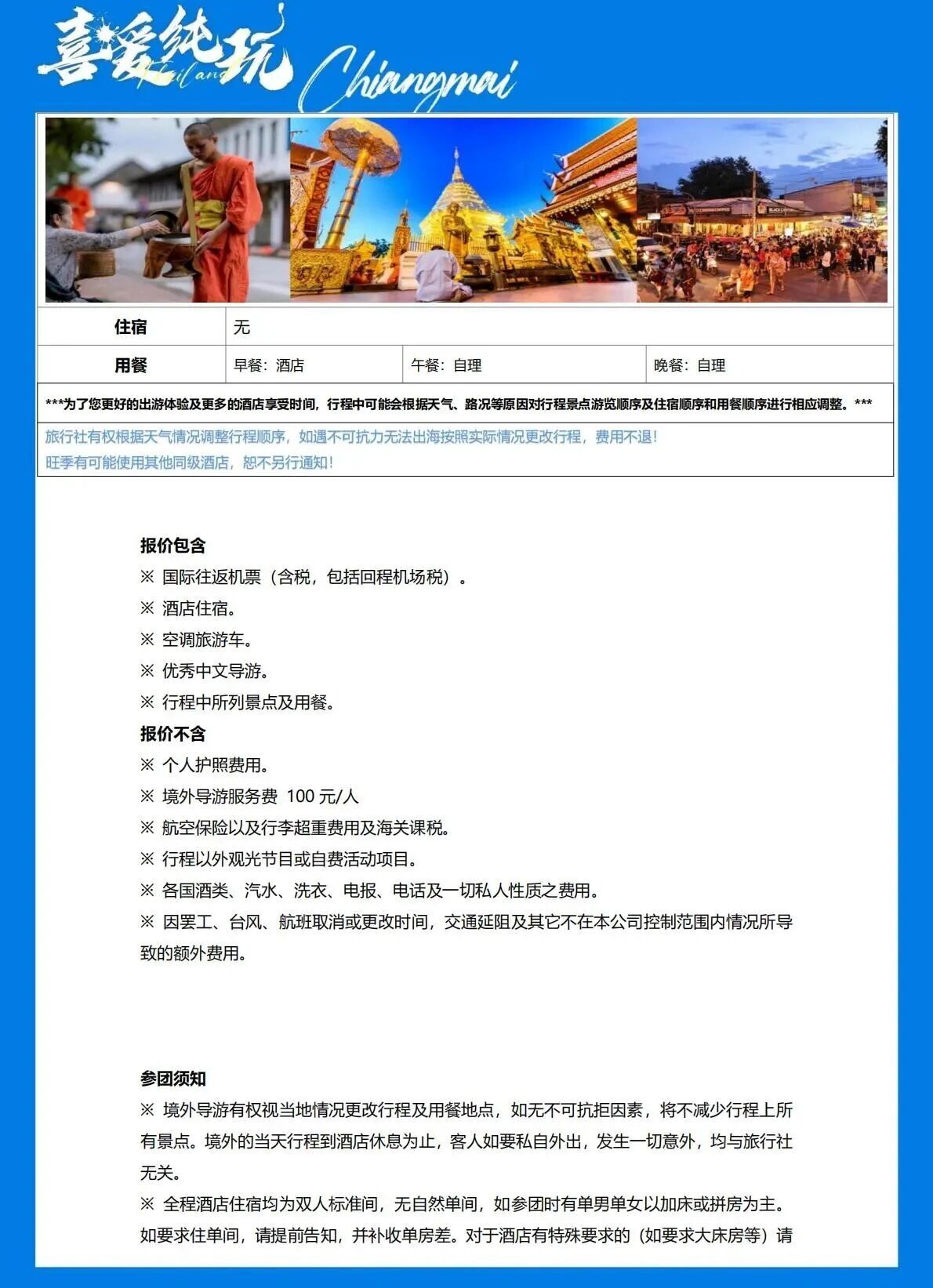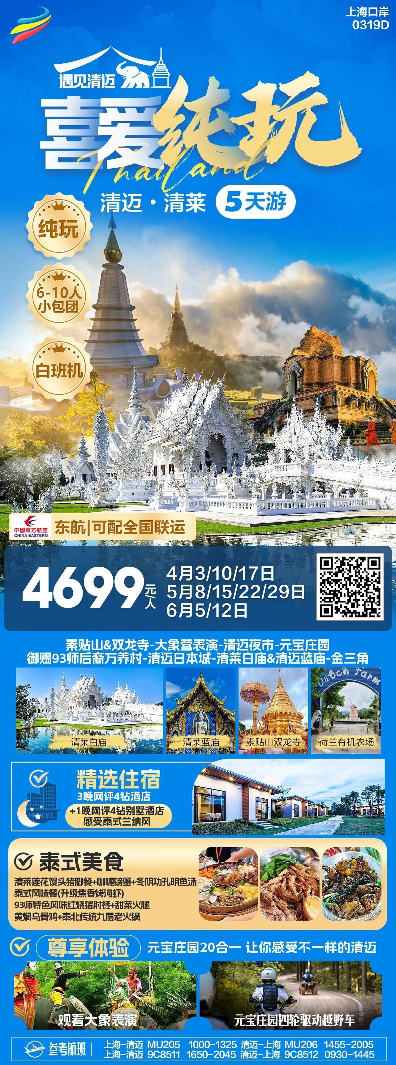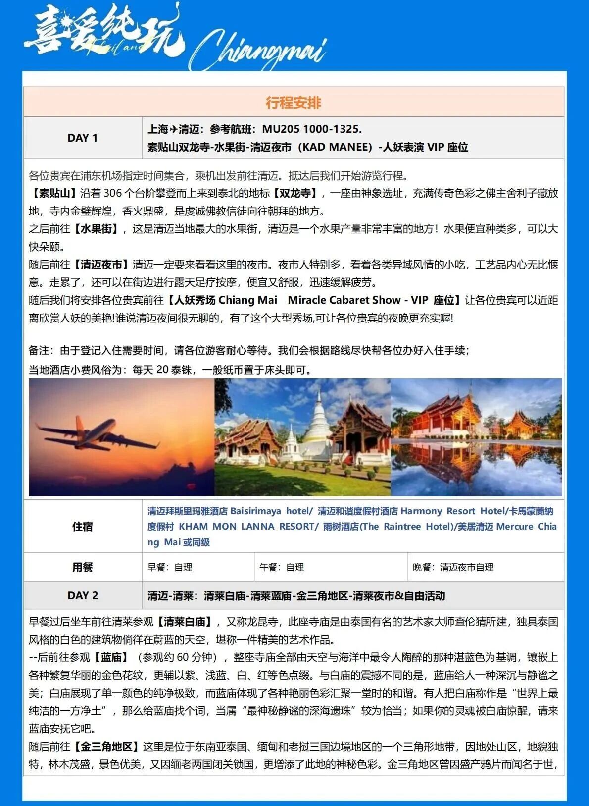 <喜爱纯玩-东航> 清迈、清莱5日 6-10人小包团 白班机 纯玩无购物 - HT