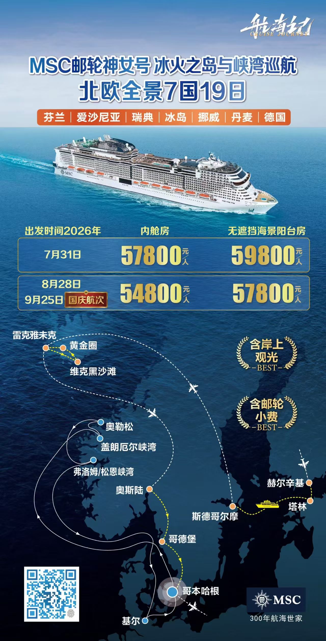 【7-8月+国庆-MSC邮轮神女号】北欧四国+冰岛+爱沙尼亚+德国 19日-芬兰 瑞典 挪威 丹麦 SW