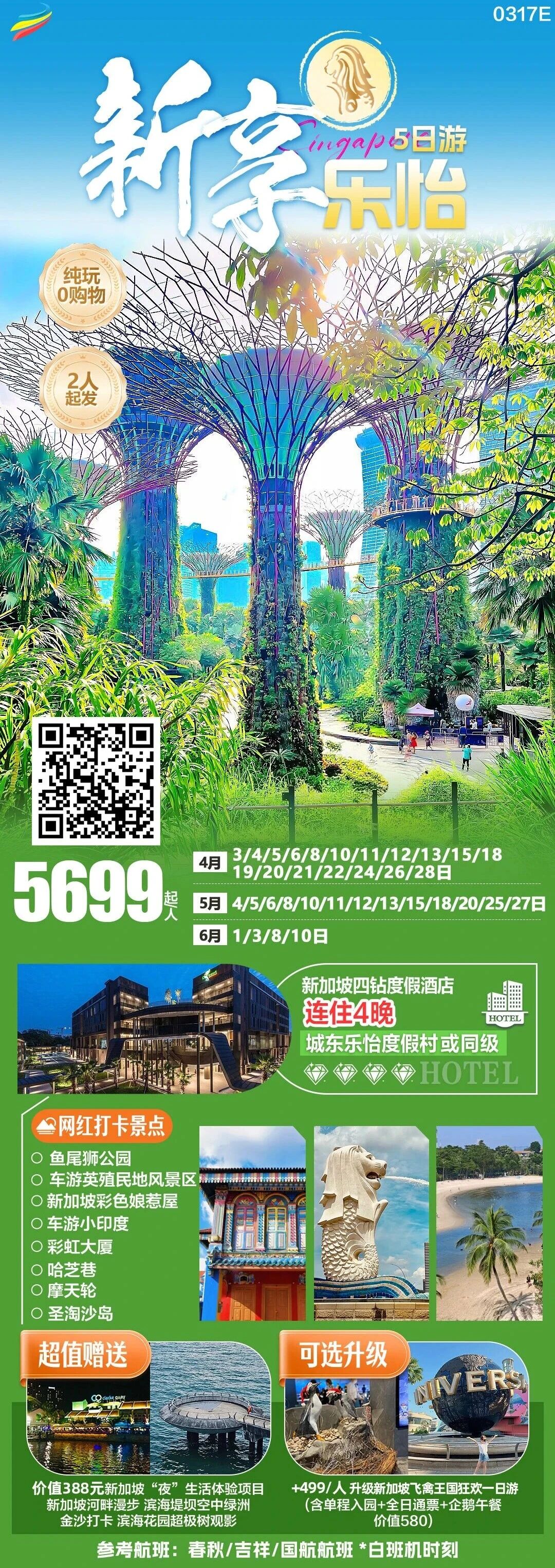 • <新享乐怡> 新加坡一地深度5日 4晚连住度假村酒店 0购物纯玩团- HT