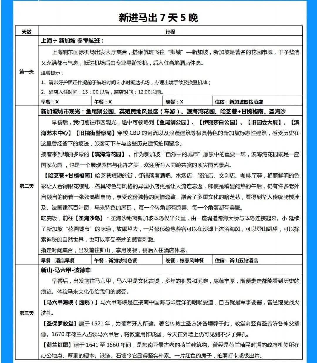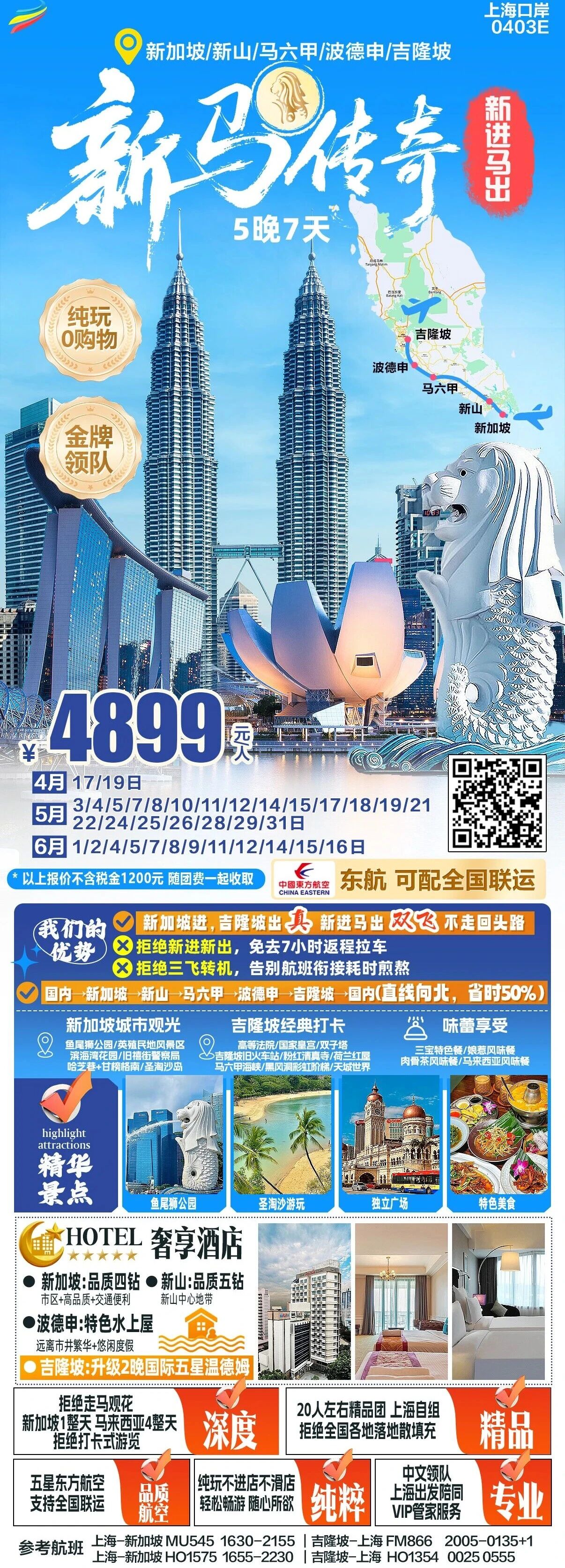 <新马传奇-新进>新加坡、马来西亚7日 新山 马六甲 波德申 纯玩团0购物 - HT
