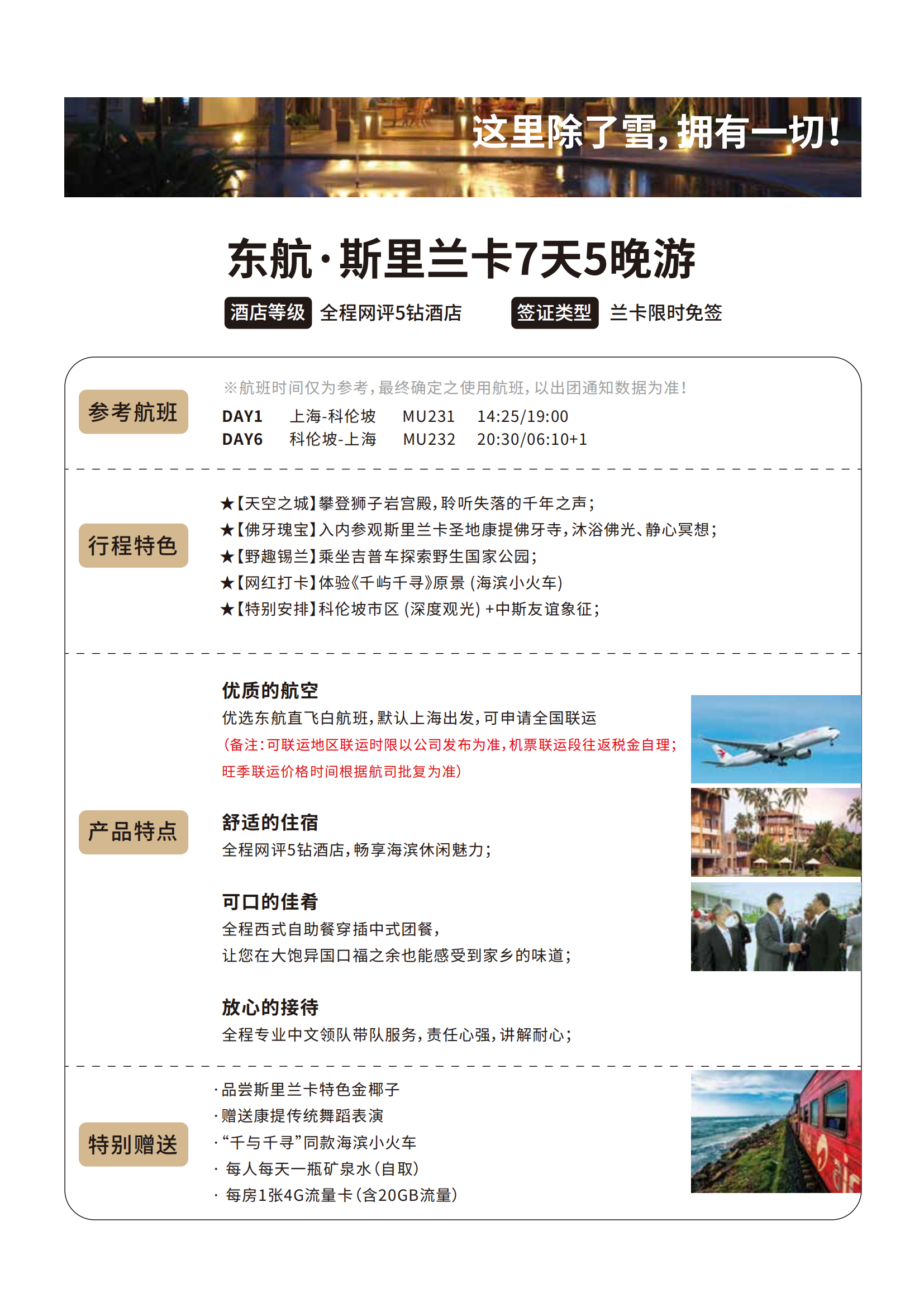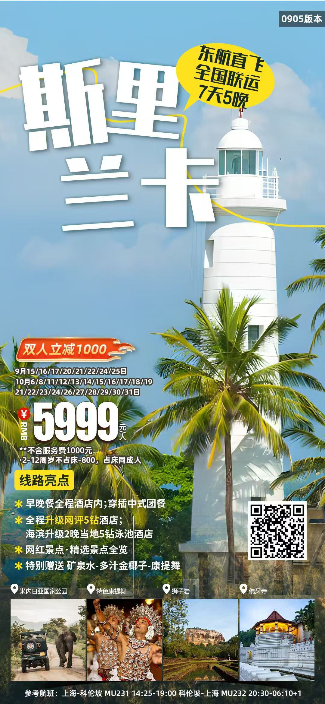 【9-10月】特惠-斯里兰卡 5晚7日 LBS