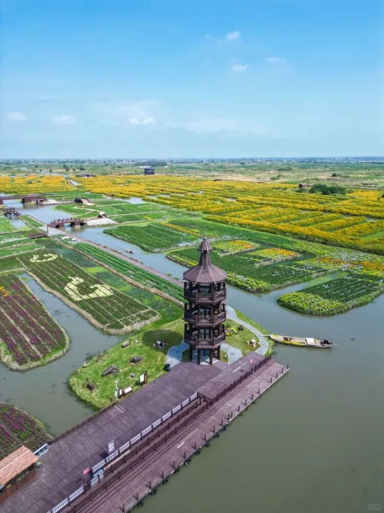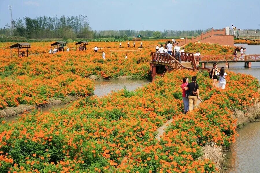 千垛景区以"垛田"特色地貌享誉全球。去千垛景区,见万寿菊花,黄叶纷飞,妍丽雍容,体验一把“人在画中”的仙境。