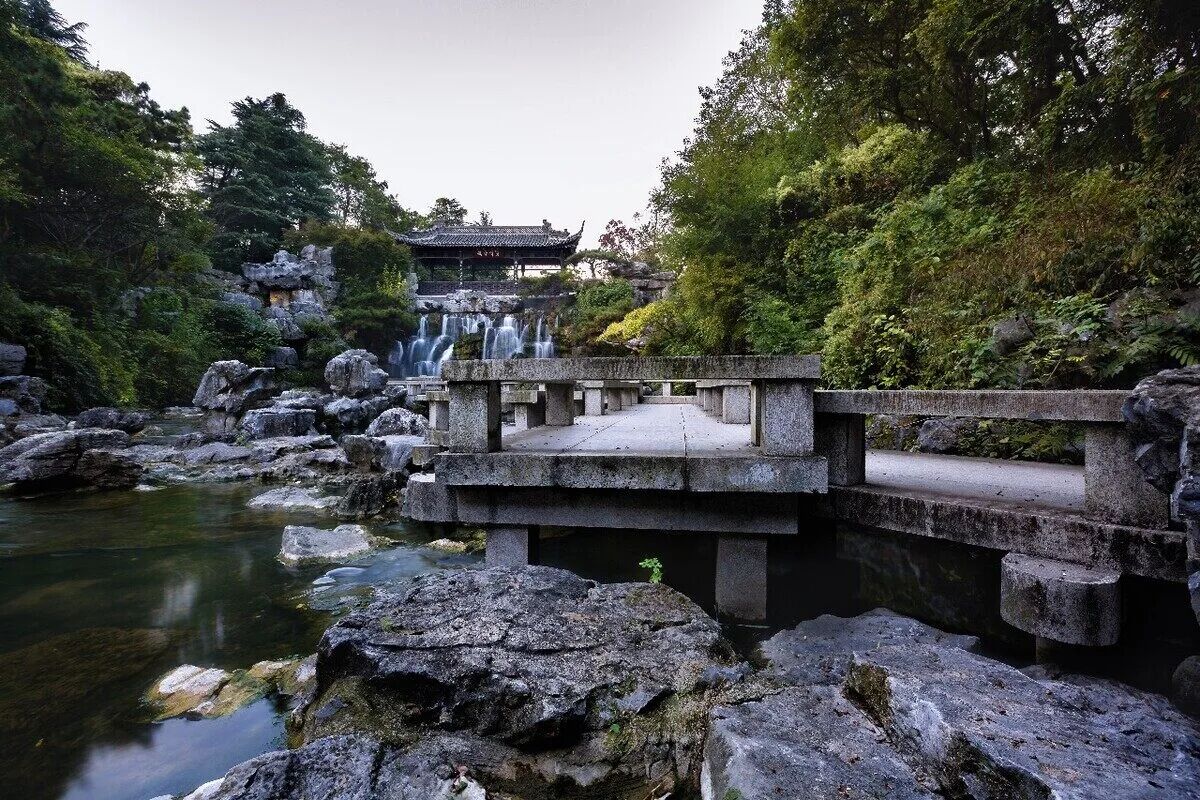 -早餐后游览【双峰云栈】双峰云栈位于蜀冈东峰与中峰之间,九曲池以北,是乾隆年间按察使衔程玓所建,为扬州清二十四景之一。据《扬州画舫录》记载,‘’双峰云栈有听泉楼、露香亭、环绿阁诸胜,猿扳蛇折,百陟百降,中有瀑布三级,飞琼溅雪,汹涌澎湃。‘’2014年3月原址复建。