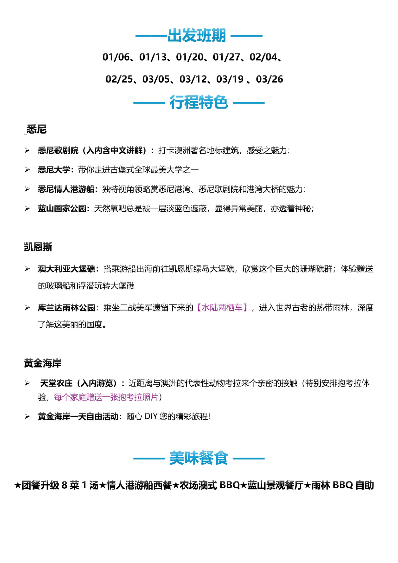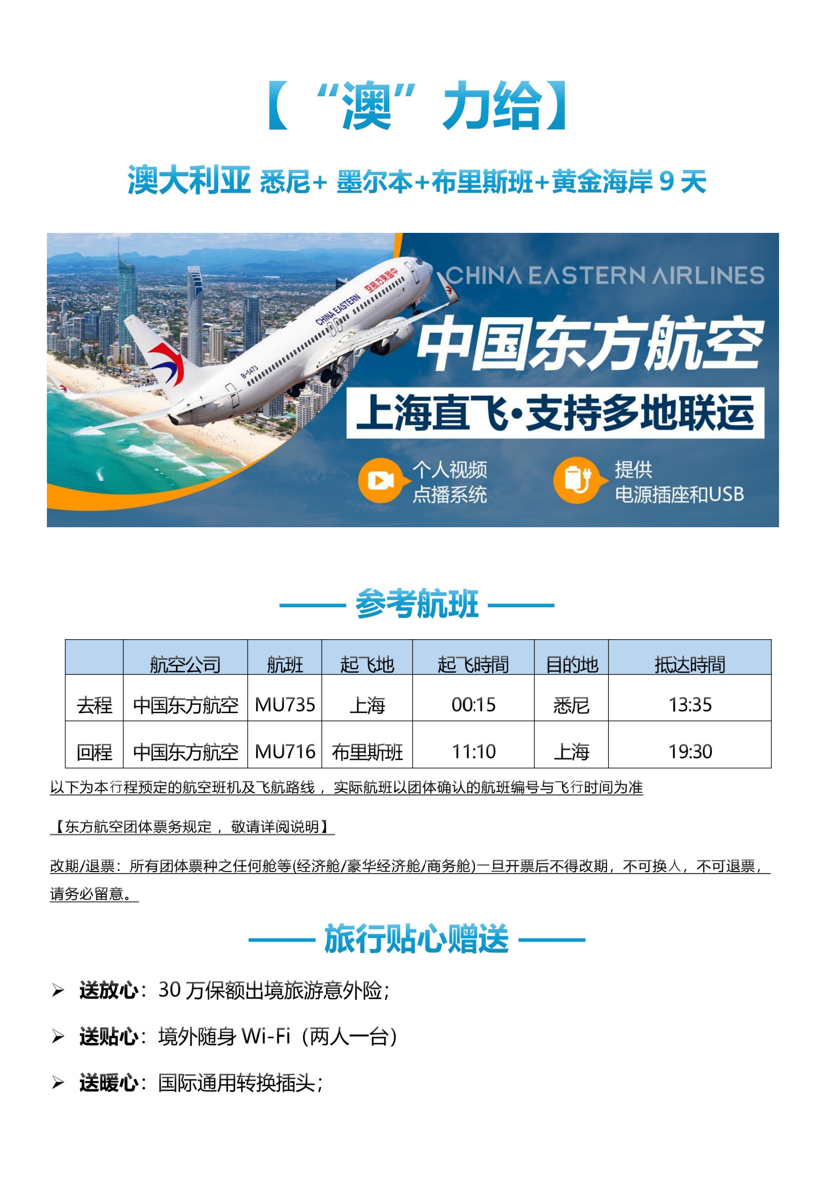 【1-3月】【澳力给】澳大利亚 9日-悉尼 墨尔本 布里斯班 黄金海岸 ZJN