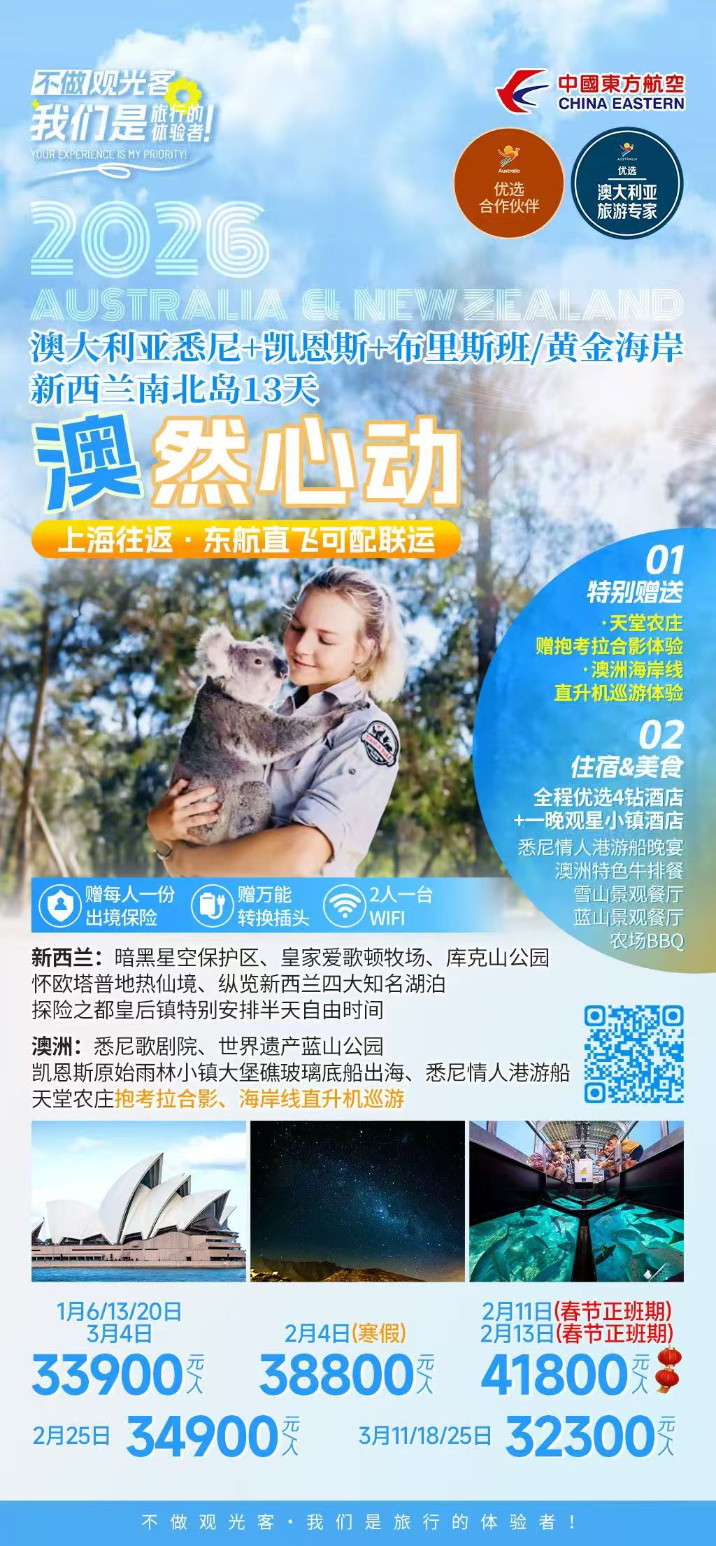 【1-3月+春节】【澳然心动】澳大利亚三城+新西兰南北岛 深度 13日 ZJN