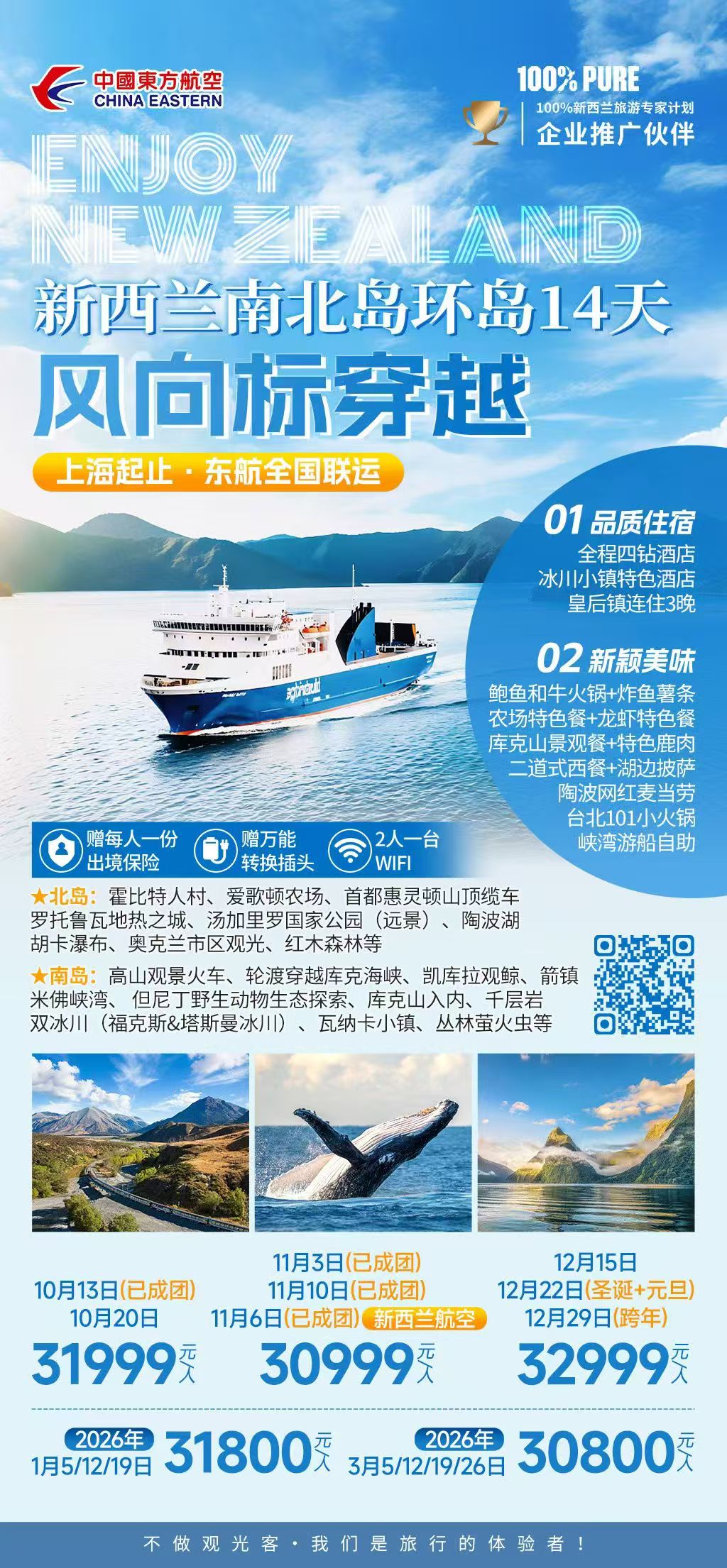 【10月-26年3月】【风向标·穿越记】新西兰南北岛14日 ZJN