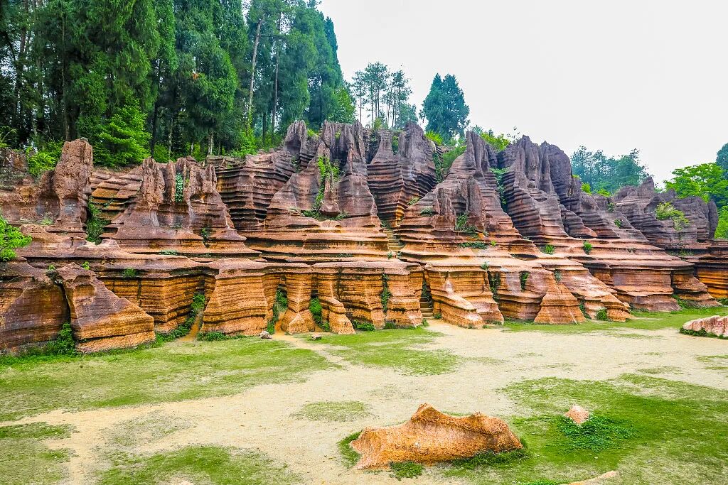 早餐后,前往武陵第一奇观【古丈红石林】红石林景区之中,石峰林立,万峰迭嶂,千姿百态的喀斯特地貌向世人展现了其独特而迷人的风采。各具美色的石景有扬子古海、天池、地池、人池、奥陶海底、小龙峡、水漫金石、花儿包、摆手坪,幸运门,宝藏坪等等,其中的海底屏风、神雕望月、士兵列阵、小龙峡谷、七彩石林等景点更令人难忘。