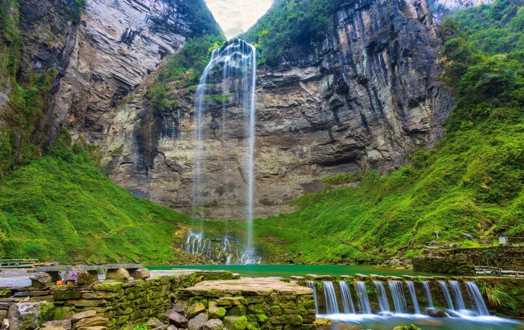 然后前去参观【流沙瀑布】(小交通必消已含);流沙瀑布位于德夯风景名胜区内九龙溪源头,瀑布高216米,如白练凌空,似银纱悬壁,是中国较高的瀑布。从德夯苗寨顺着九龙溪步行不远,便可见到流沙瀑布。溪水从绝壁之上腾空而下,较高的落差,流水到桥)了下面就散落成流沙状,因此瀑布被称为流沙瀑布;