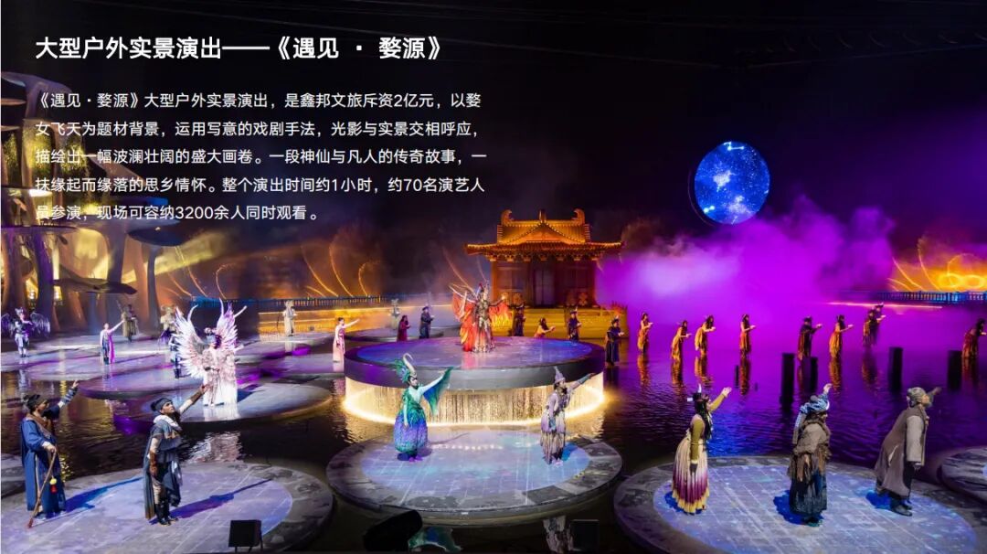 晚上观看价值180元《遇见·婺源》大型户外实景演出,婺女洲度假区来源于美丽的“婺女飞天”传说,传承古徽州徽派文化,以婺女飞天、五显财神两大本地文化故事为支撑,运用理学、徽商、非遗等多元文化致力于构建中国新式徽艺度假生活目的地,旨在为来自全球各地的游客呈现一处极具徽州特色的文艺小镇,深度体验“骨子里的徽州”故事。