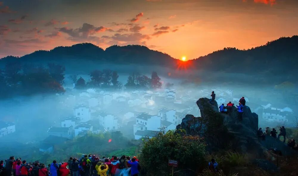 【天街】民居围绕水口呈扇形梯状错落排布,U形村落带您体验南方的“布达拉宫”。徽式商铺林立,前店后坊,一幅流动的缩写版“清明上河图”。家家户户屋顶晒盘云集,绘就出一幅“晒秋人家”风情画。