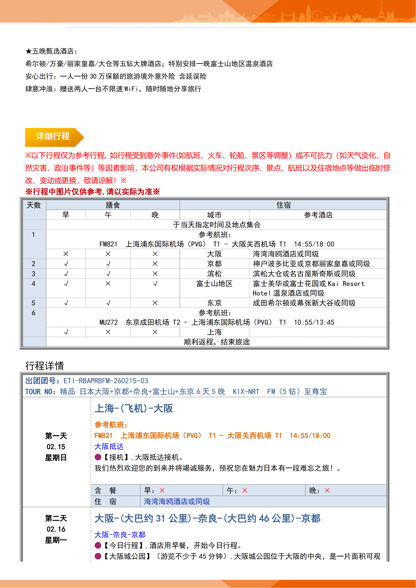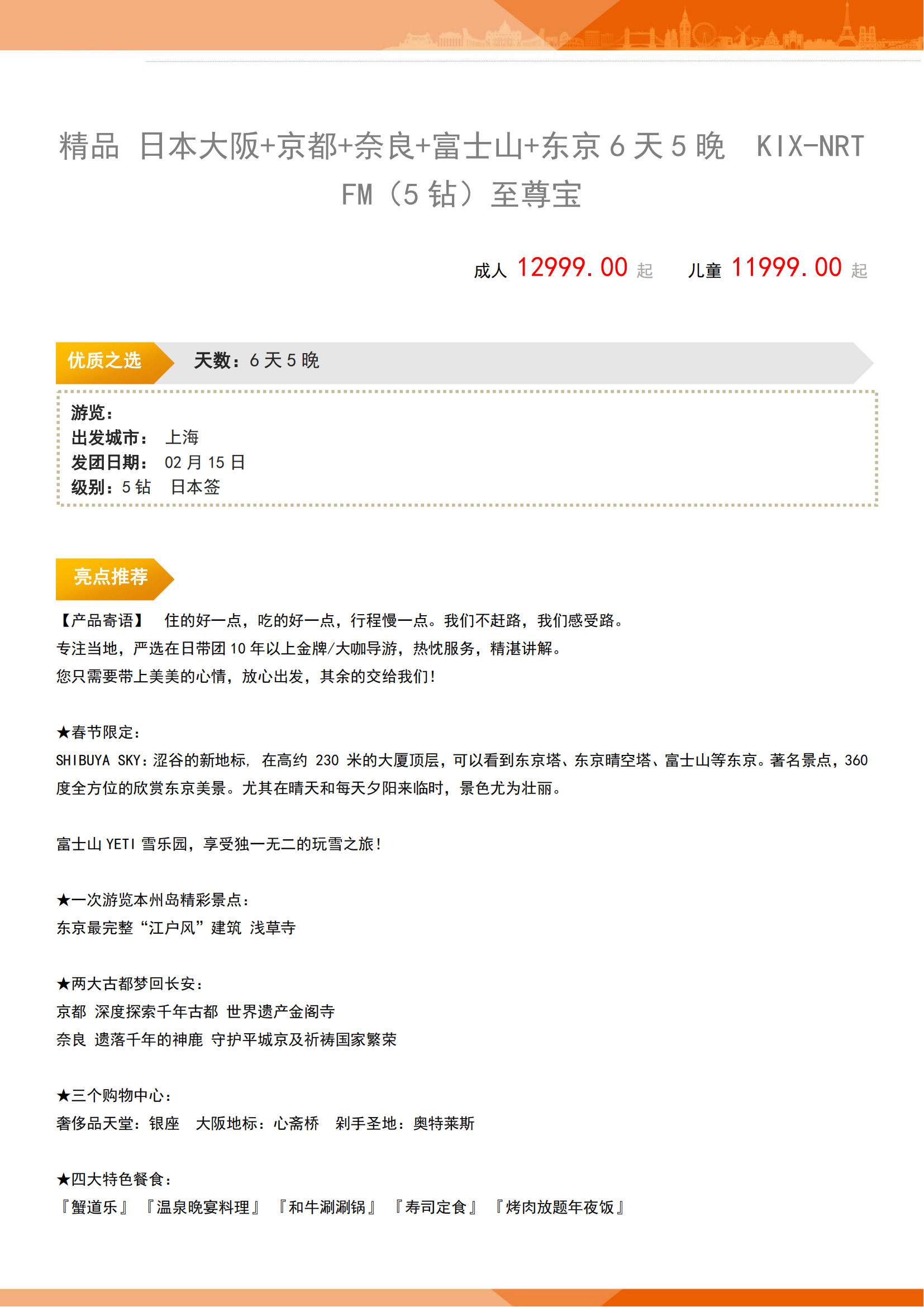 【2月春节】5钻精品 至尊宝-日本 大阪+京都+奈良+富士山+东京 5晚6日 FJY