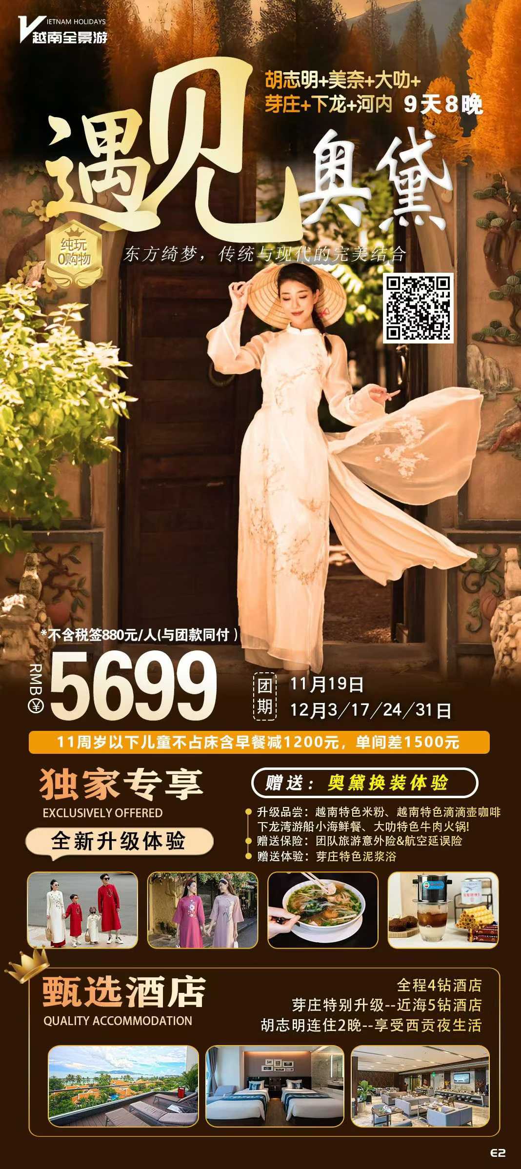 <遇见奥黛>胡志明、美奈、大叻、芽庄、下龙、河内9日(胡进河出) 纯玩团0购物 - HY