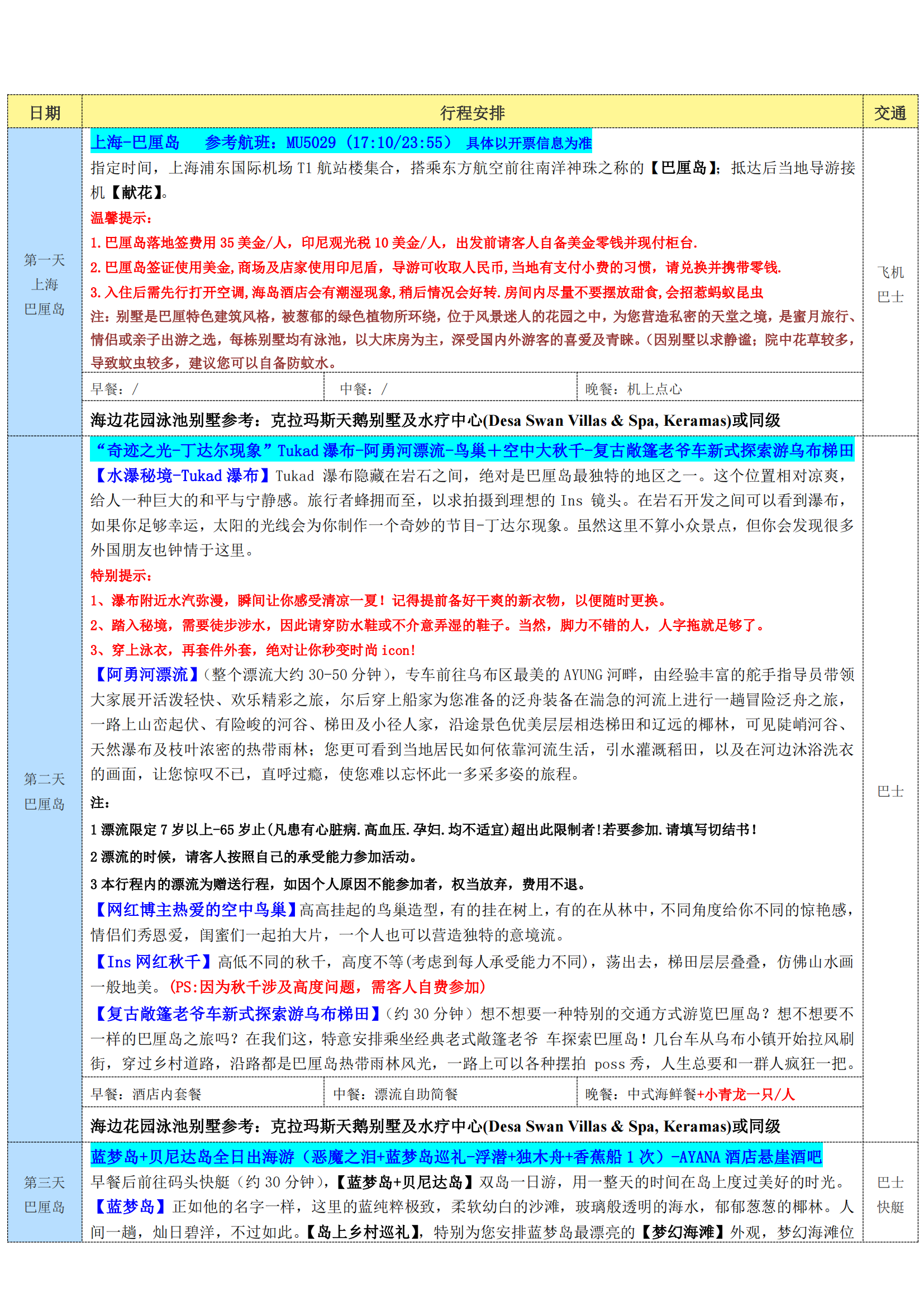 【1-2月+春节-东航】醉爱-巴厘岛 5晚7日-3晚黑沙滩海边花园别墅+2晚海边五星酒店 ZW