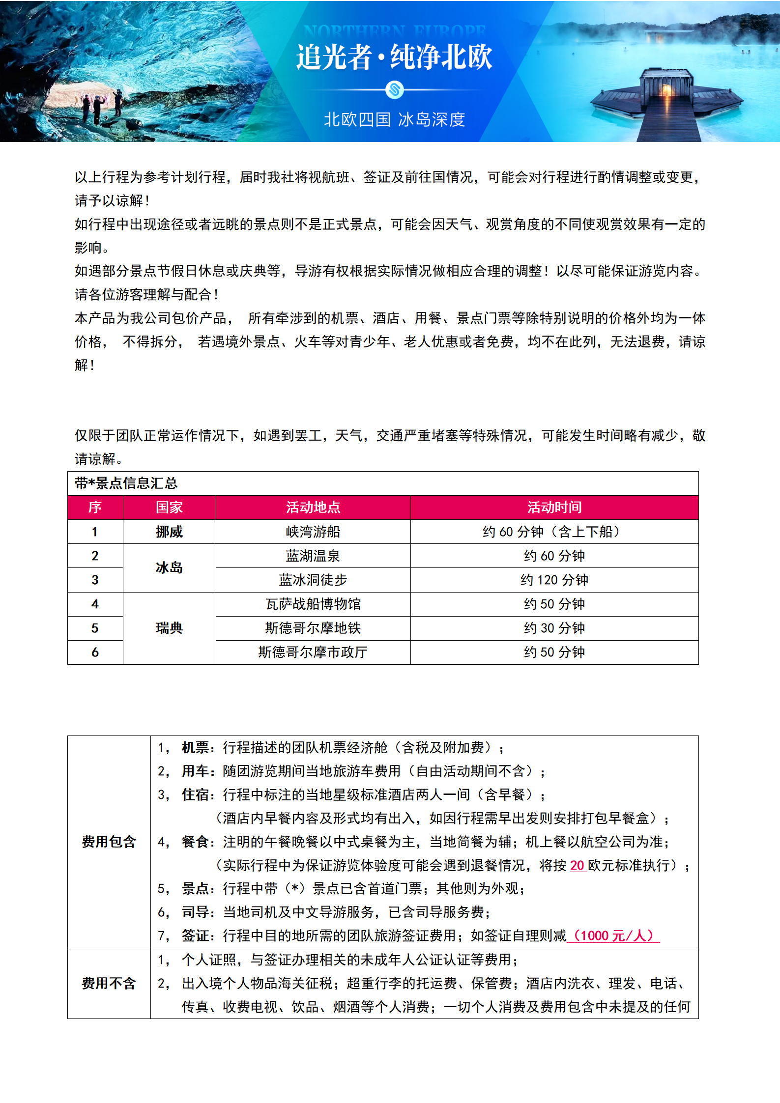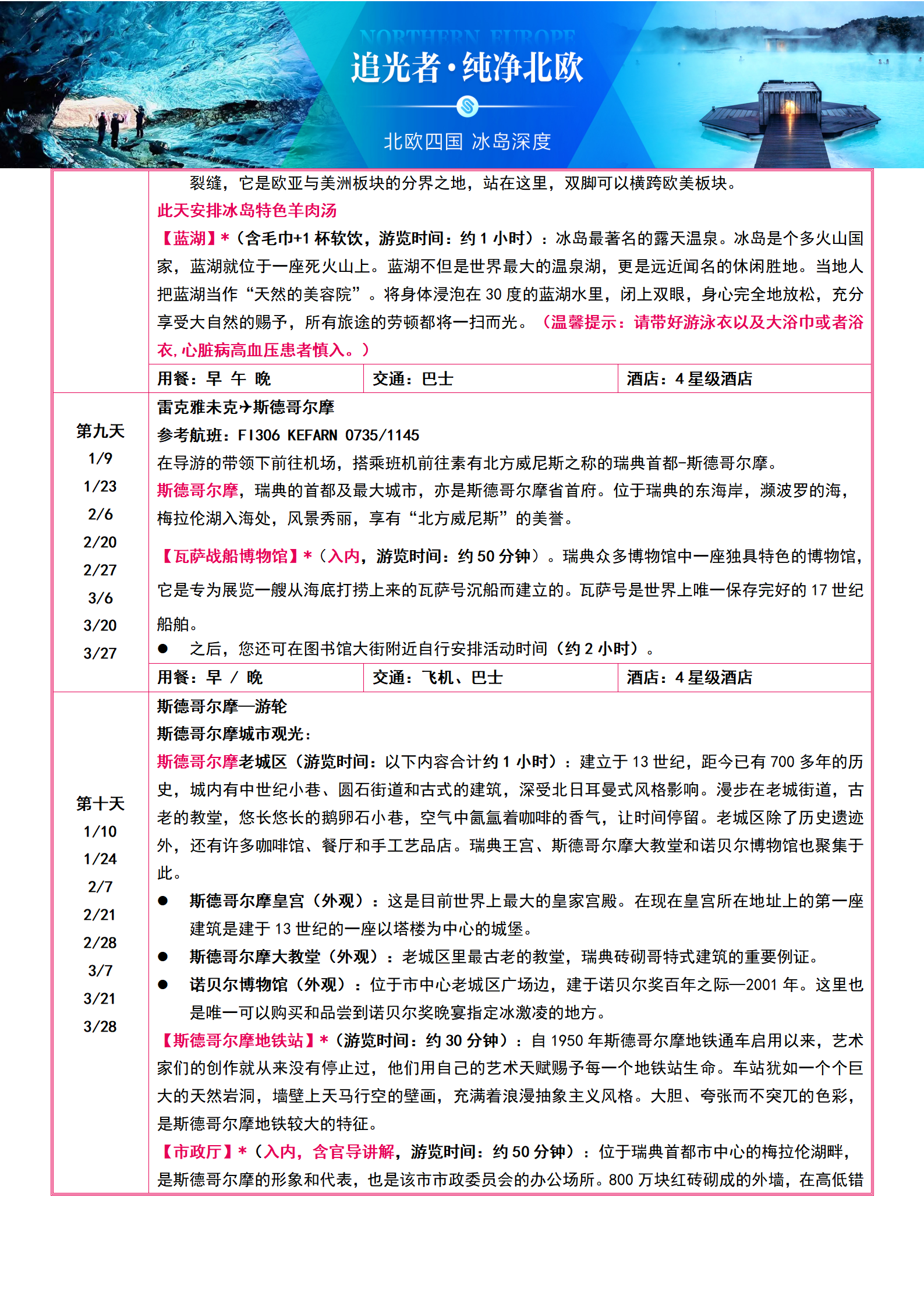 【1-3月-吉祥】【追光者·纯净北欧】北欧四国+冰岛10晚12日+3晚冰岛+蓝冰洞+蓝湖温泉+挪威双峡湾+5顿特色餐 SW