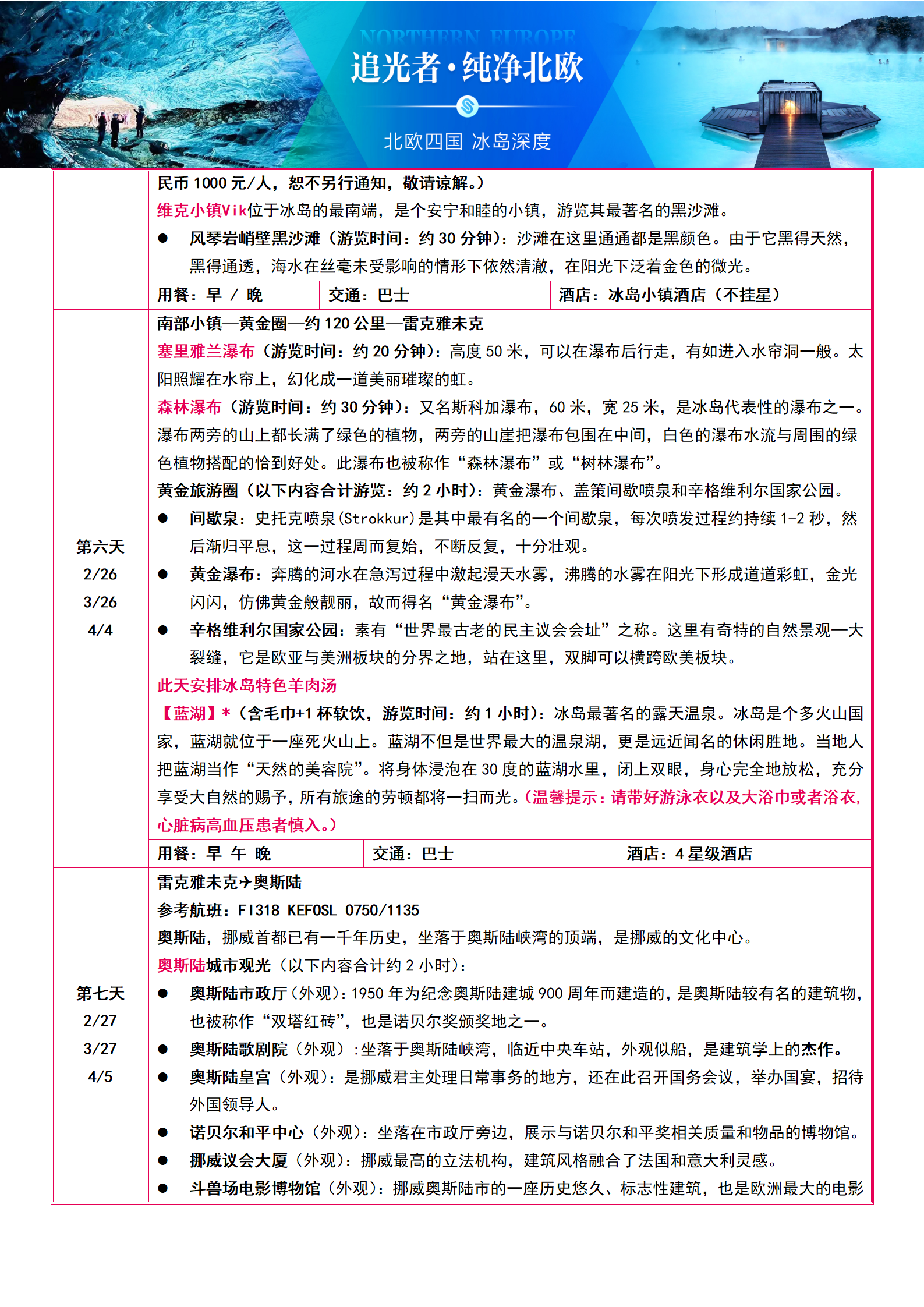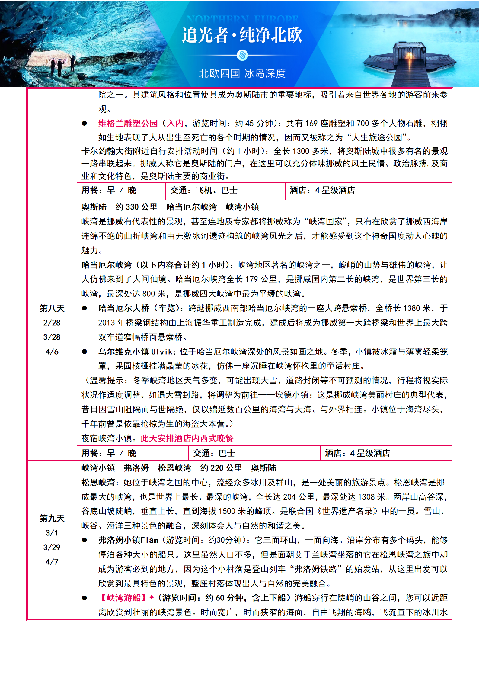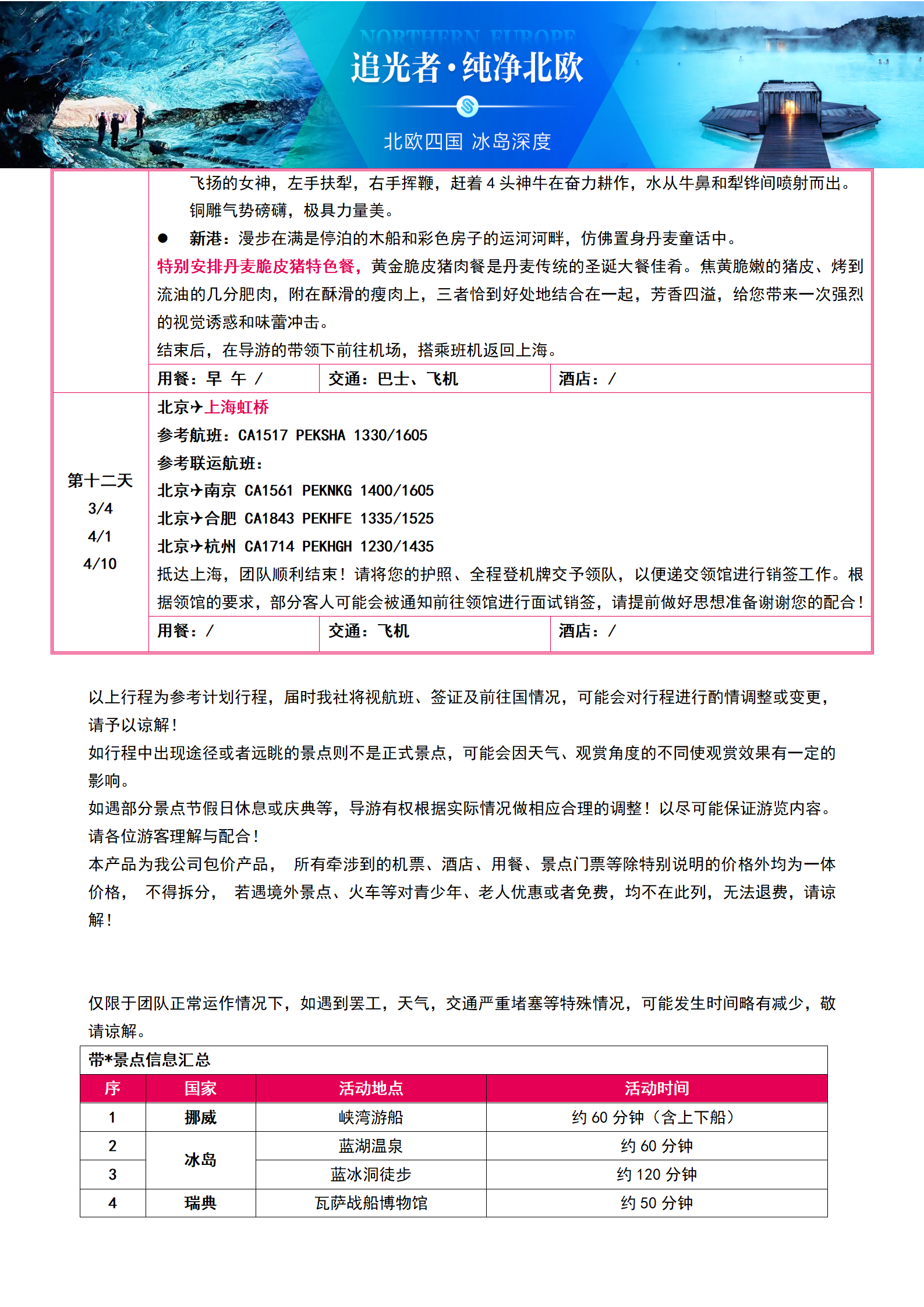 【2-3月-国航】【追光者·纯净北欧】北欧四国+冰岛 10晚12日-3晚冰岛+蓝冰洞+蓝湖温泉+挪威双峡湾+5顿特色餐 SW