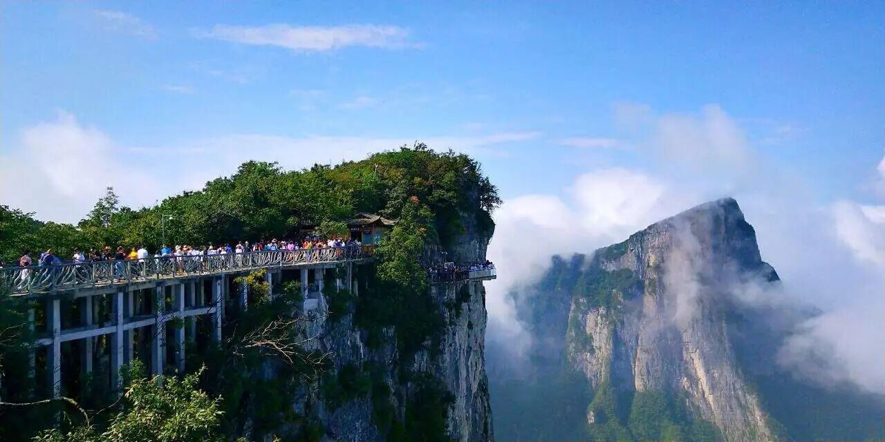 于指定时间前往张家界,后游览文学大师金庸欣然挥毫的“天门仙山”【天门山】(游览约4小时);乘坐“世界第一长高山客运索道,索道全长7455米,海拔1279米,体验腾云飞翔的刺激震撼,登张家界之巅云梦仙顶,俯瞰张家界全景,观赏奇妙美丽的盆景花园,游览盆景石区、登云梦仙顶,山体孤峰高耸,气势临空独尊,世界最优秀的翼装飞侠杰布·科里斯的惊天挑战也曾在此举行。