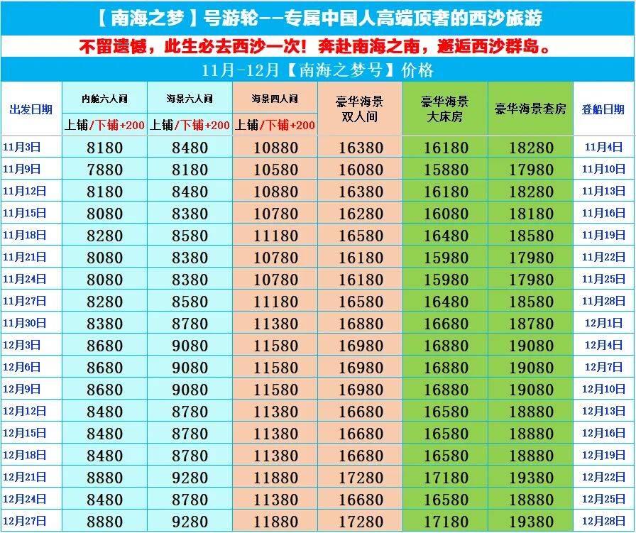 由于西沙邮轮是全国同期销售,报名请提供身份证正反面+全款占位!