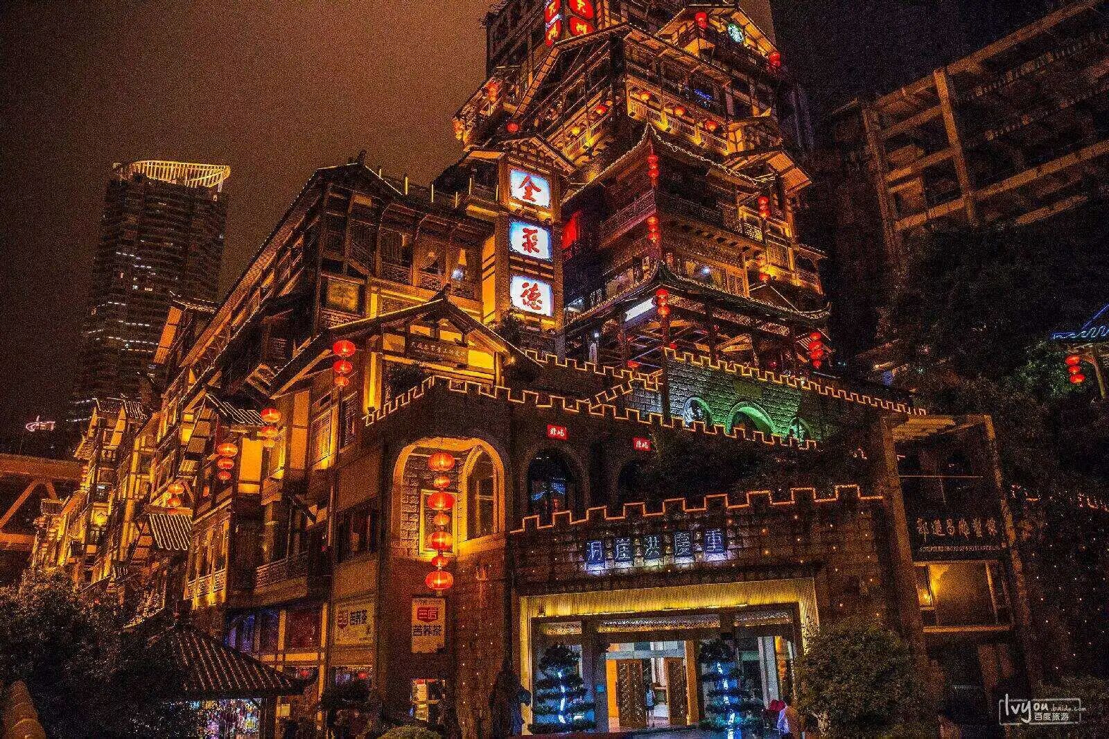 后抵达【洪崖洞】游客自由游览,它位于长江、嘉陵江两江交汇的滨江地带,有着巴渝传统建筑特色-吊脚楼,依山就势,沿江而建。
