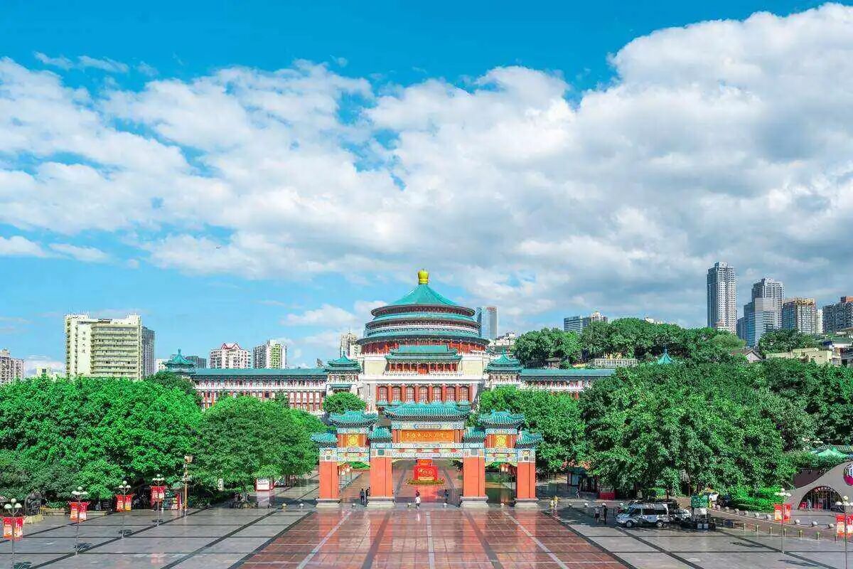 打卡重庆地标、国家AAAA级旅游景区【重庆人民广场】(自由活动)、【重庆市人民大礼堂】(外观),重庆市人民大礼堂被誉为“20世纪新中国十大建筑物之一”,入选“首批中国20世纪建筑遗产”名录、“重庆十大文化符号”,是中国传统宫殿建筑风格与西方建筑的大跨度结构巧妙结合的杰作。外地人来渝必去打卡地!