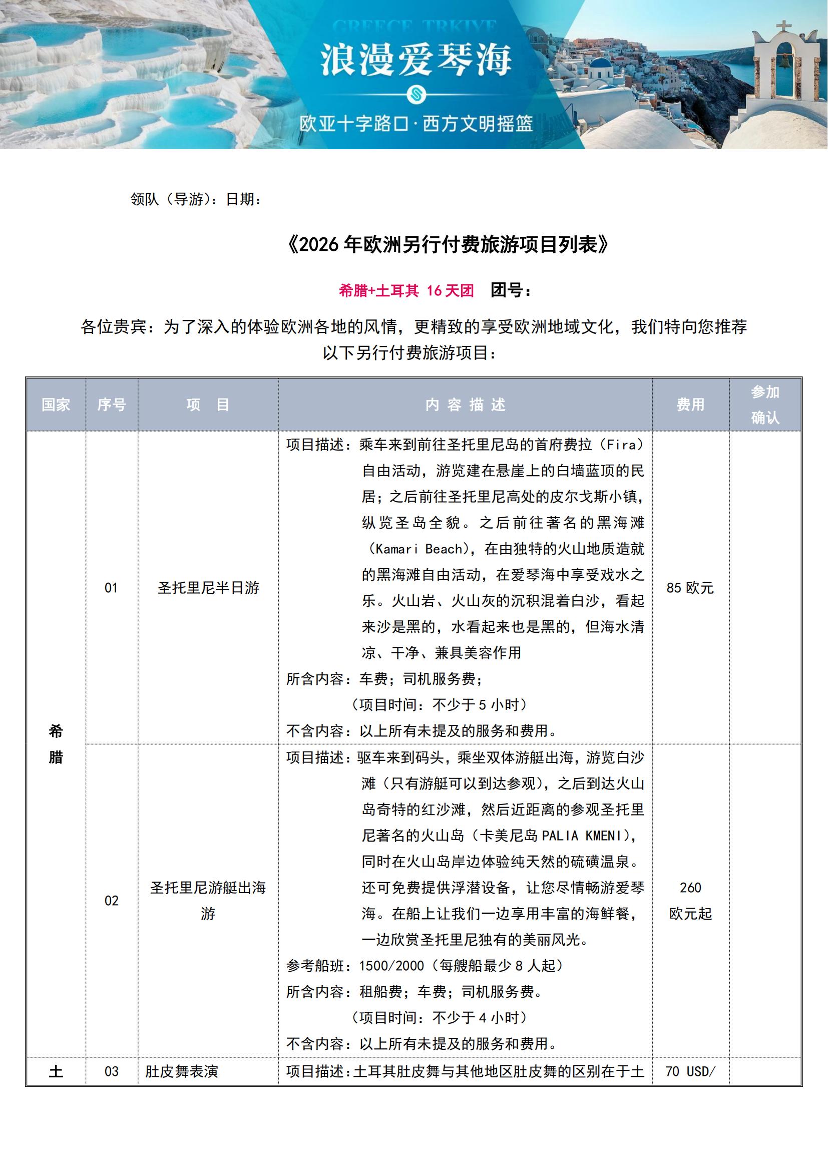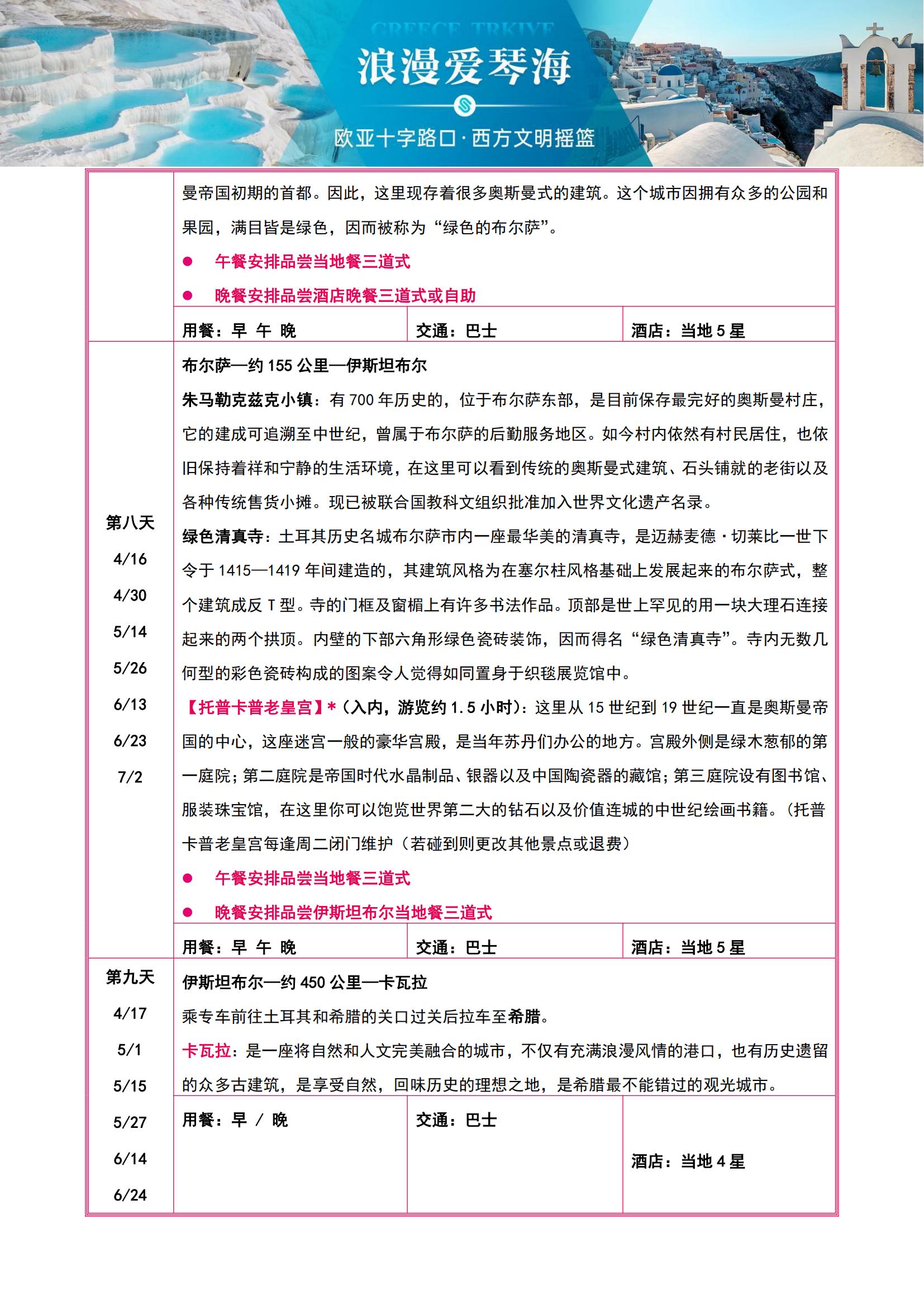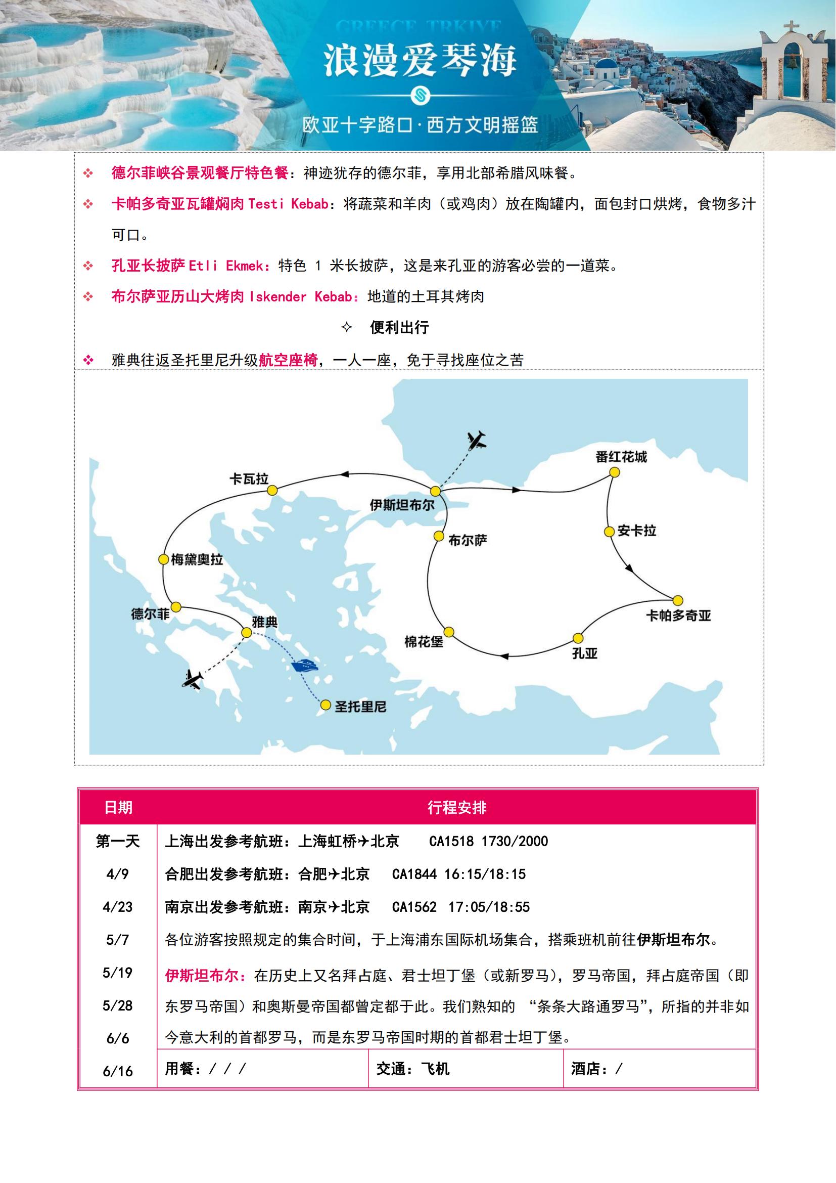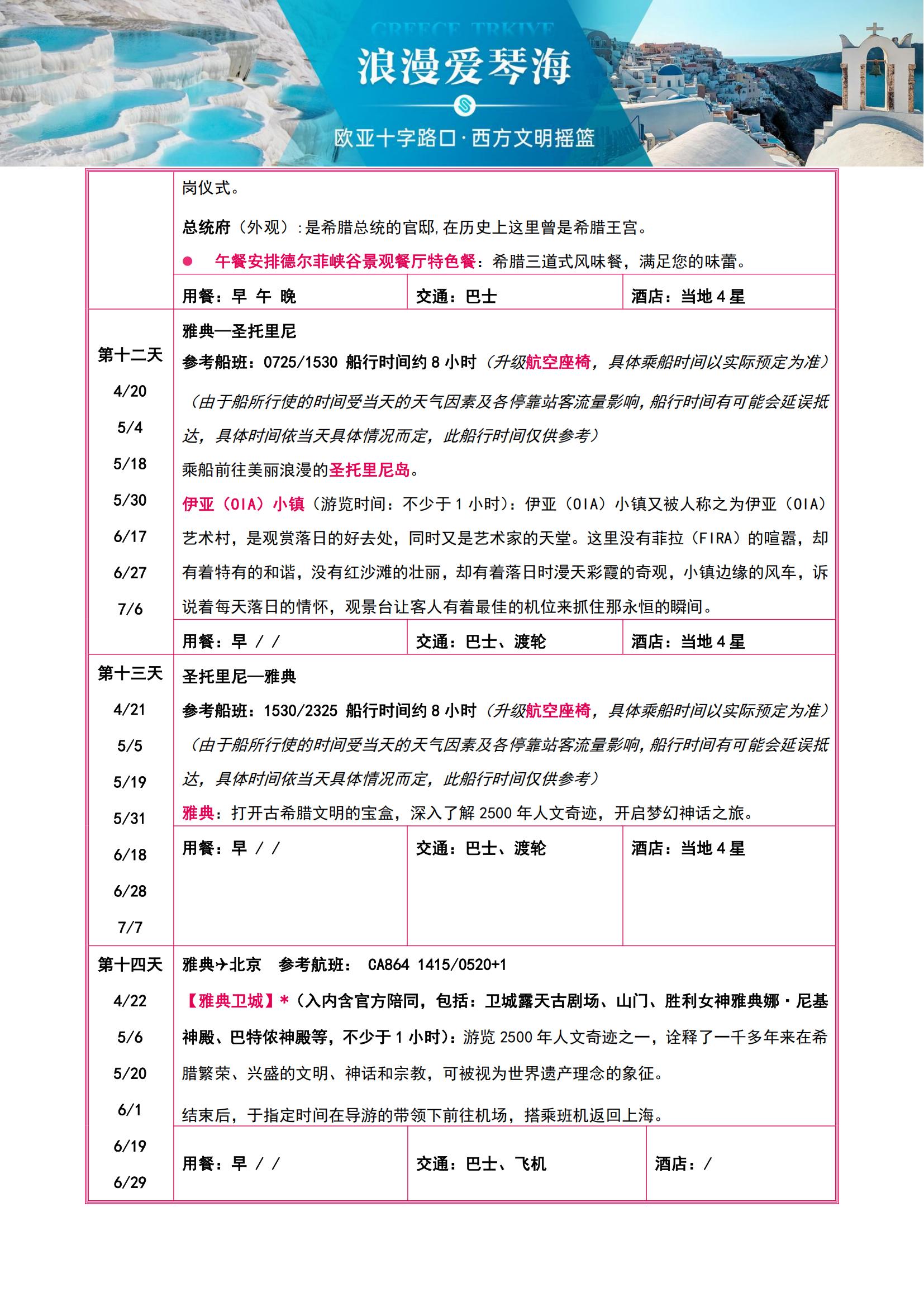 发团日期:4/9报价:26800元/人 发团日期:4/23、5/7、5/19、5/28、6/6、6/16报价:27800元/人 发团日期:6/25(早鸟优惠:前10位报名立减500元/人)