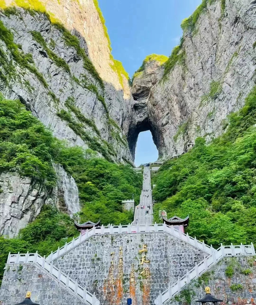早餐后BUS赴湘西土家文化展览中心【土司府】;根据预约时间游览“武陵之魂”湘西神山【天门山】(赠送双程扶梯、玻璃栈道鞋套),乘世界最长高山客运索道上山或下山:游览碧野瑶台、觅仙奇境、天门洞开景区,体验“云在脚下,奇峰尽览,万象目中”的豪迈感觉。观四大奇观,【天门索道】:索道线路斜长7455米,上、下站水平高差1279米,是世界最长的单线循环脱挂抱索器车厢式索道。【玻璃栈道】这条看着就让人腿软的玻璃栈道给人带来的刺激震撼感。【通天大道】:被称为通天大道的盘山公路共计99弯,“天下第一公路奇观”横空出世,垂直高差达千米左右。【天门洞开】:九百九十九级台阶登上天门洞,是罕见的高海拔穿山溶洞。全线立于万丈悬崖的中间,给人以与悬崖共起伏同屈伸的感觉。