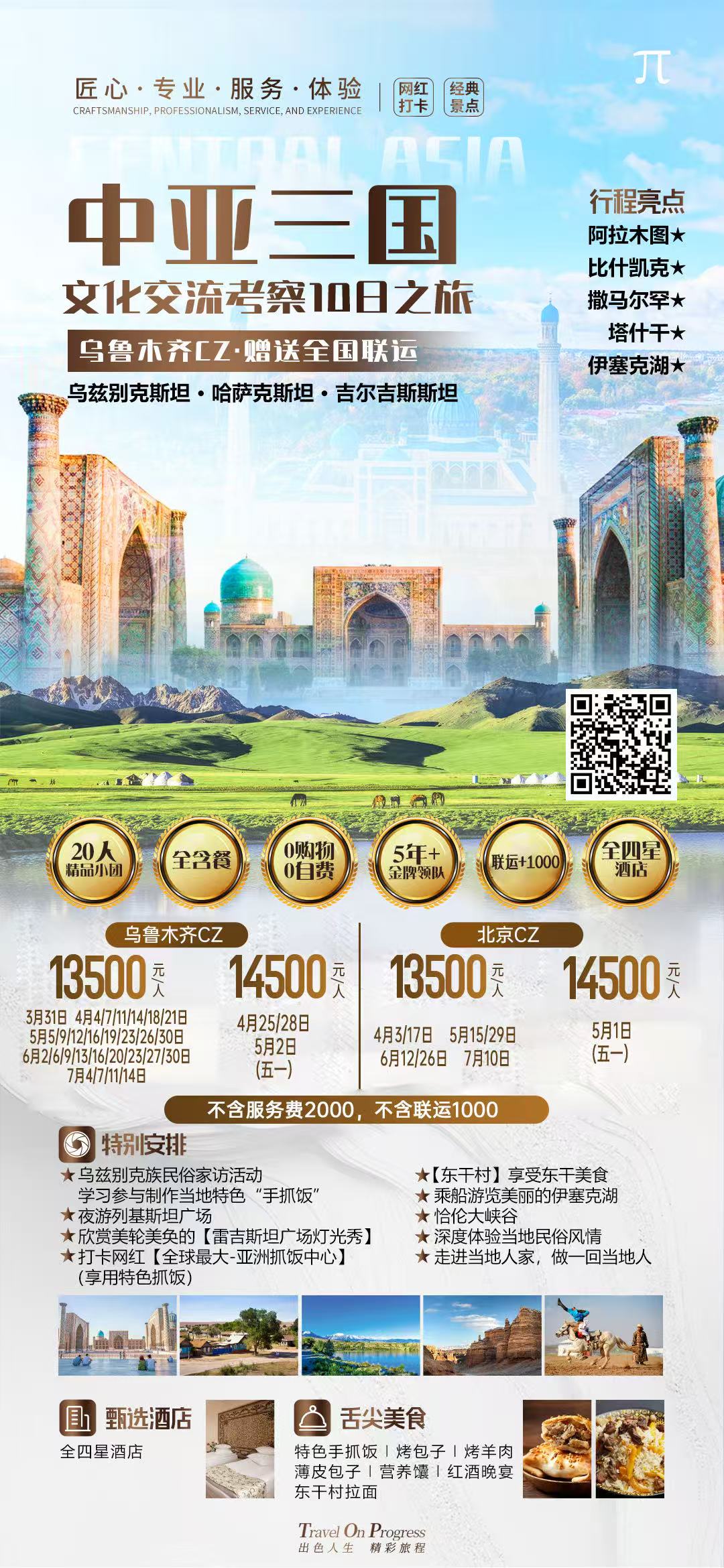 【2026年3-6月追寻中亚异域风情】哈萨克斯坦+乌兹别克斯坦+吉尔吉斯斯坦10日神秘之旅(CZ)TS