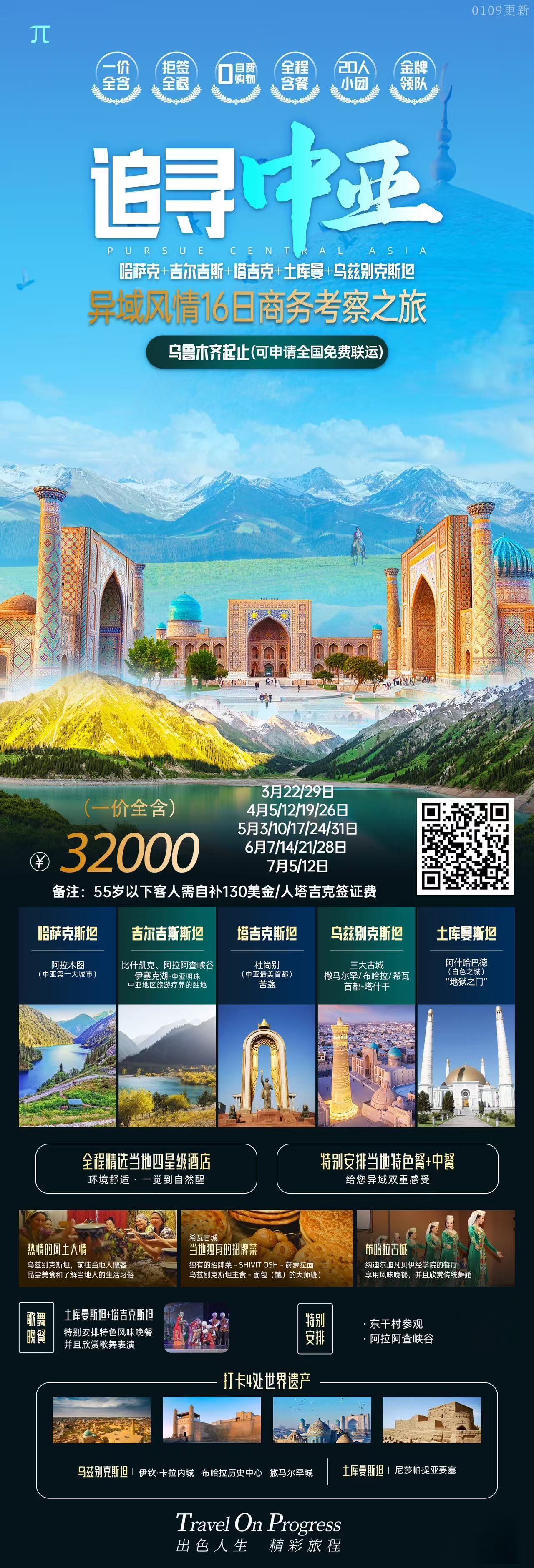【2026年3-7月中亚5国异域风情】哈萨克+吉尔吉斯+塔吉克+土库曼+乌兹别克斯坦16日全景文化团(CZ)TS