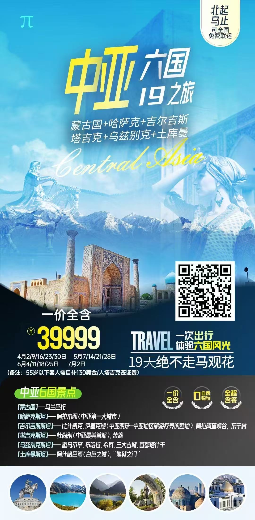 【2026年3-7月中亚6国异域风情】蒙古国+哈萨克+吉尔吉斯+塔吉克+土库曼+乌兹别克斯坦19日全景文化团(CZ)TS